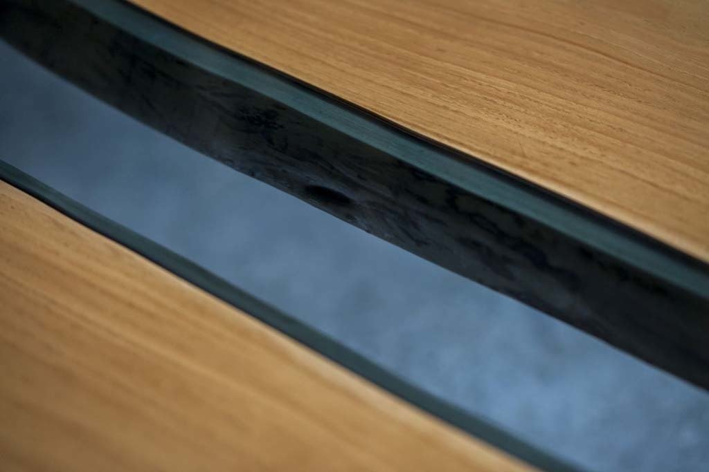 | Kullanılan Malzeme | Ayak: Metal, Tabla: Kestane Kereste, Mavi Cam |