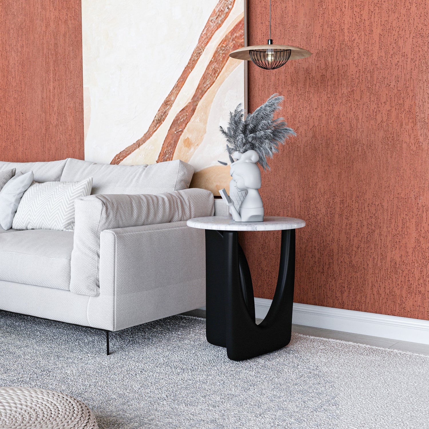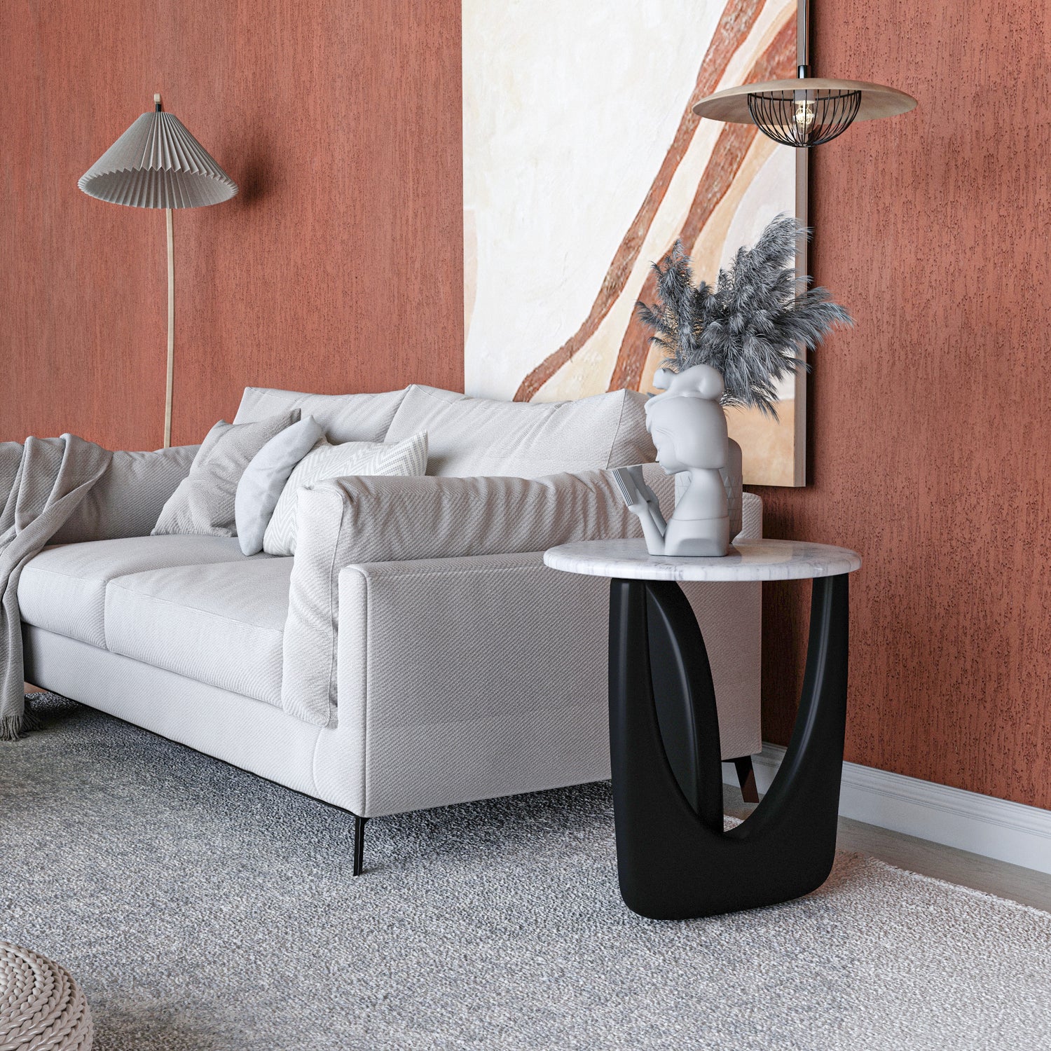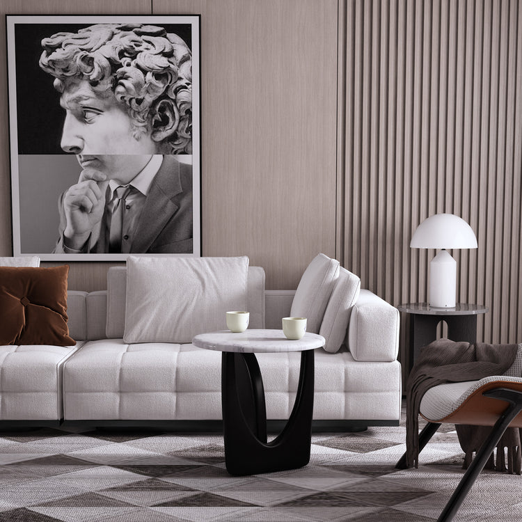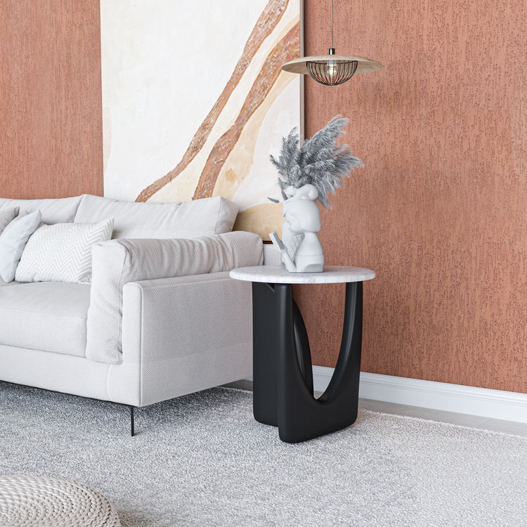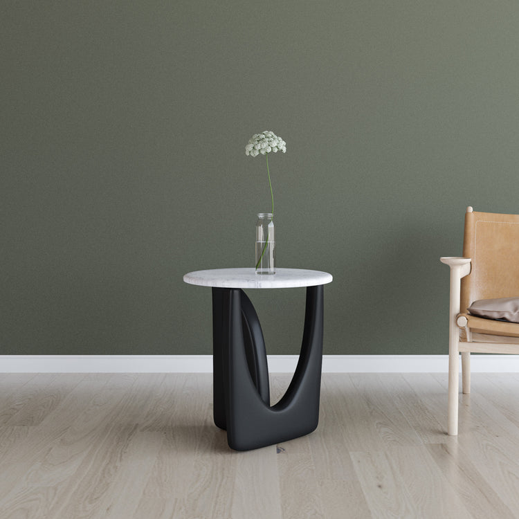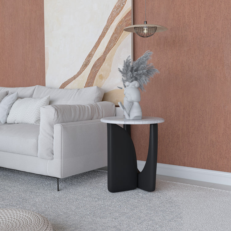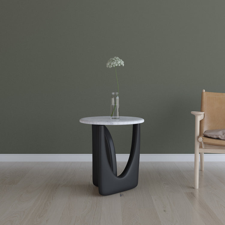 Ürün malzemesi:  Siyah statik ayak, beyaz mermer tabladır.