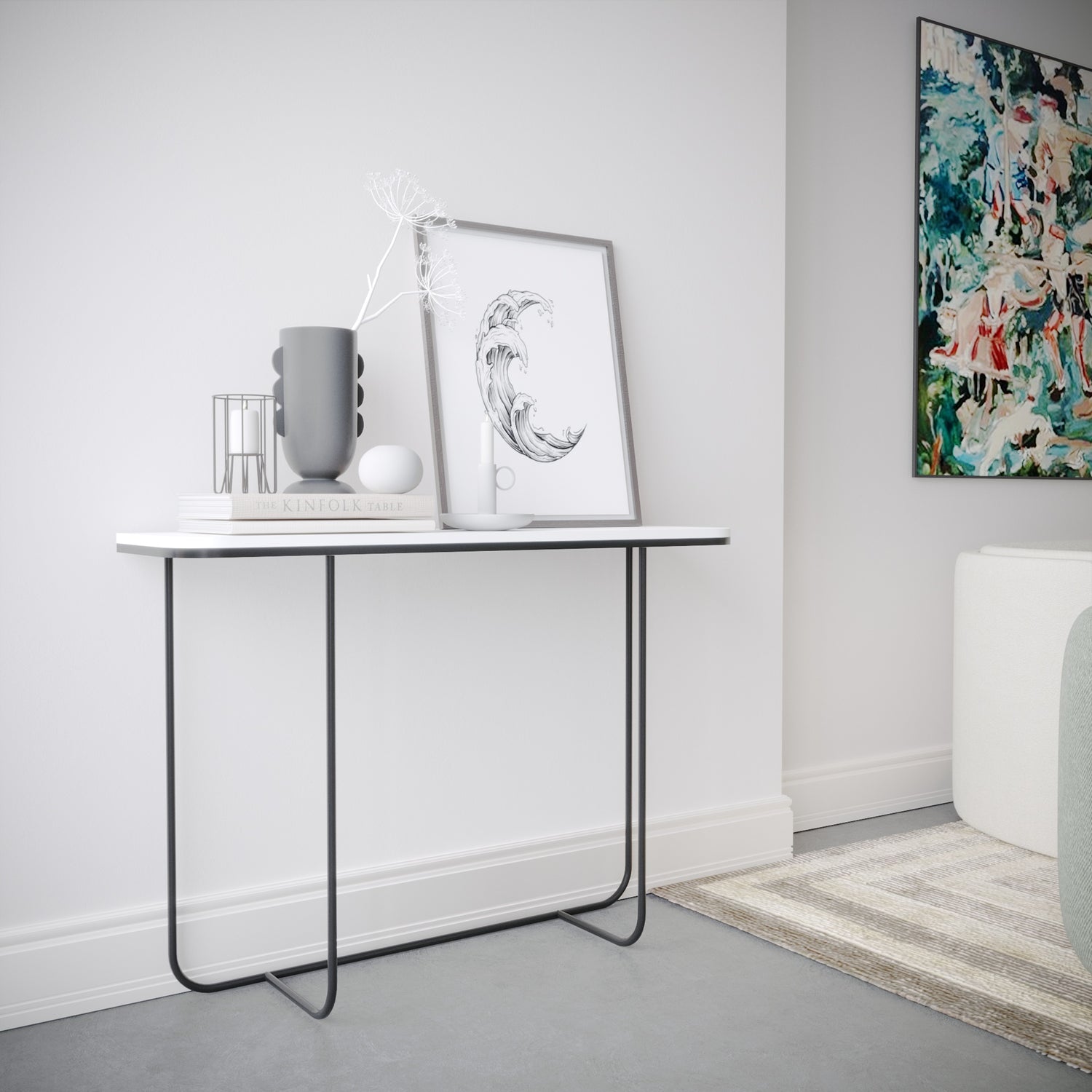 Genişlik: 110 cm, Derinlik: 30 cm, Yükseklik: 76 cm Üretici: Evka. Ağırlık: Yaklaşık 10 kg ağırlığındadır. Ayak: Metal, Tabla: Beyaz Lake
