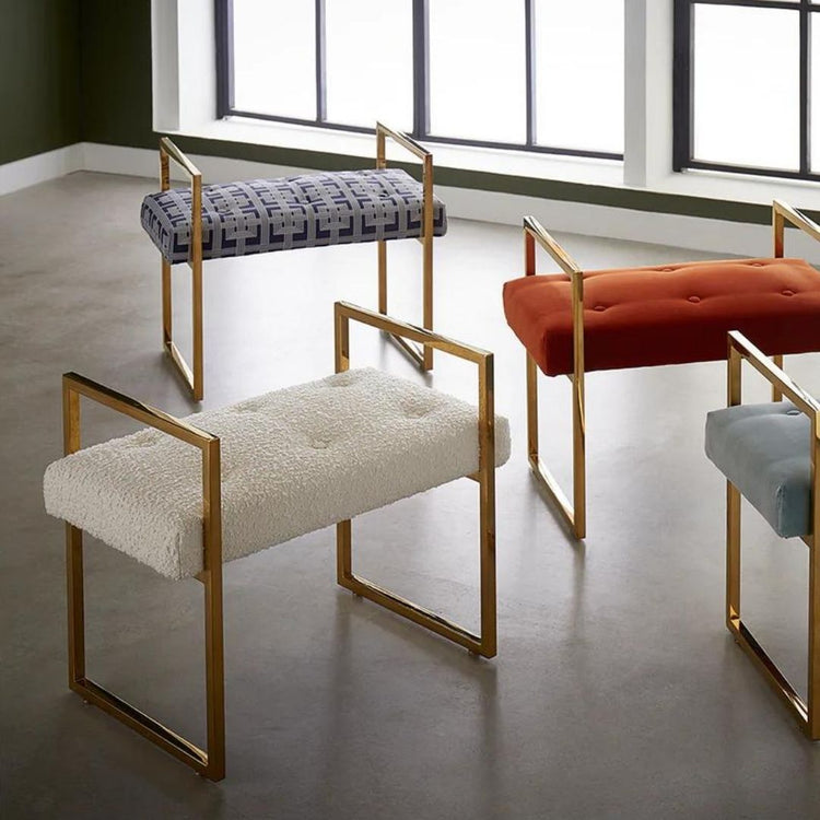 Metal ayakları ve ve bej rengi dokulu kumaşı ile Sesa Bench Puf'u çok seveceksiniz. İster yemek masasında bench olarak isterseniz makyaj pufu olarak kullanın, Sesa Bench Puf evinize çok yakışacak!