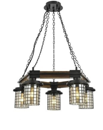 Eskitme Kaplama Modern Avize E27 Metal Ahşap Cam 50cm