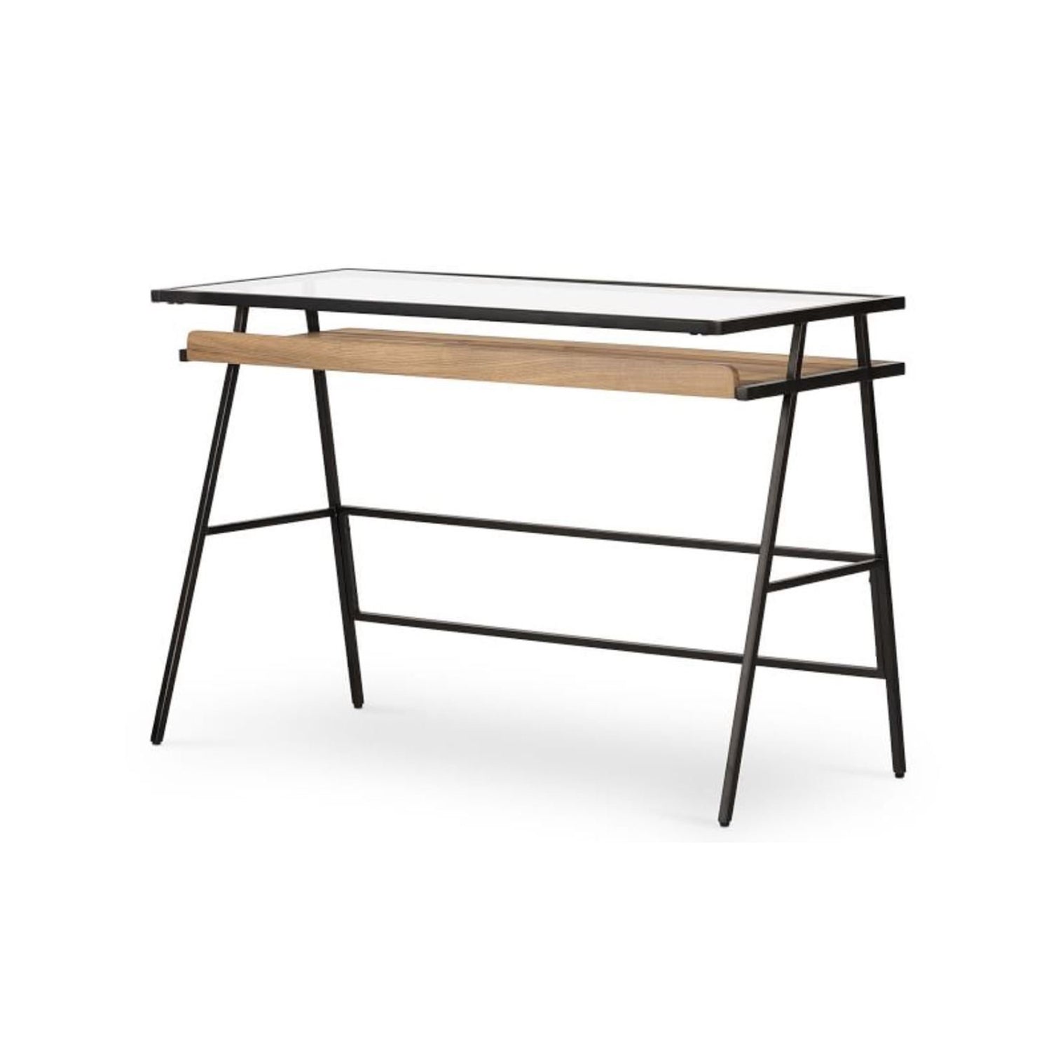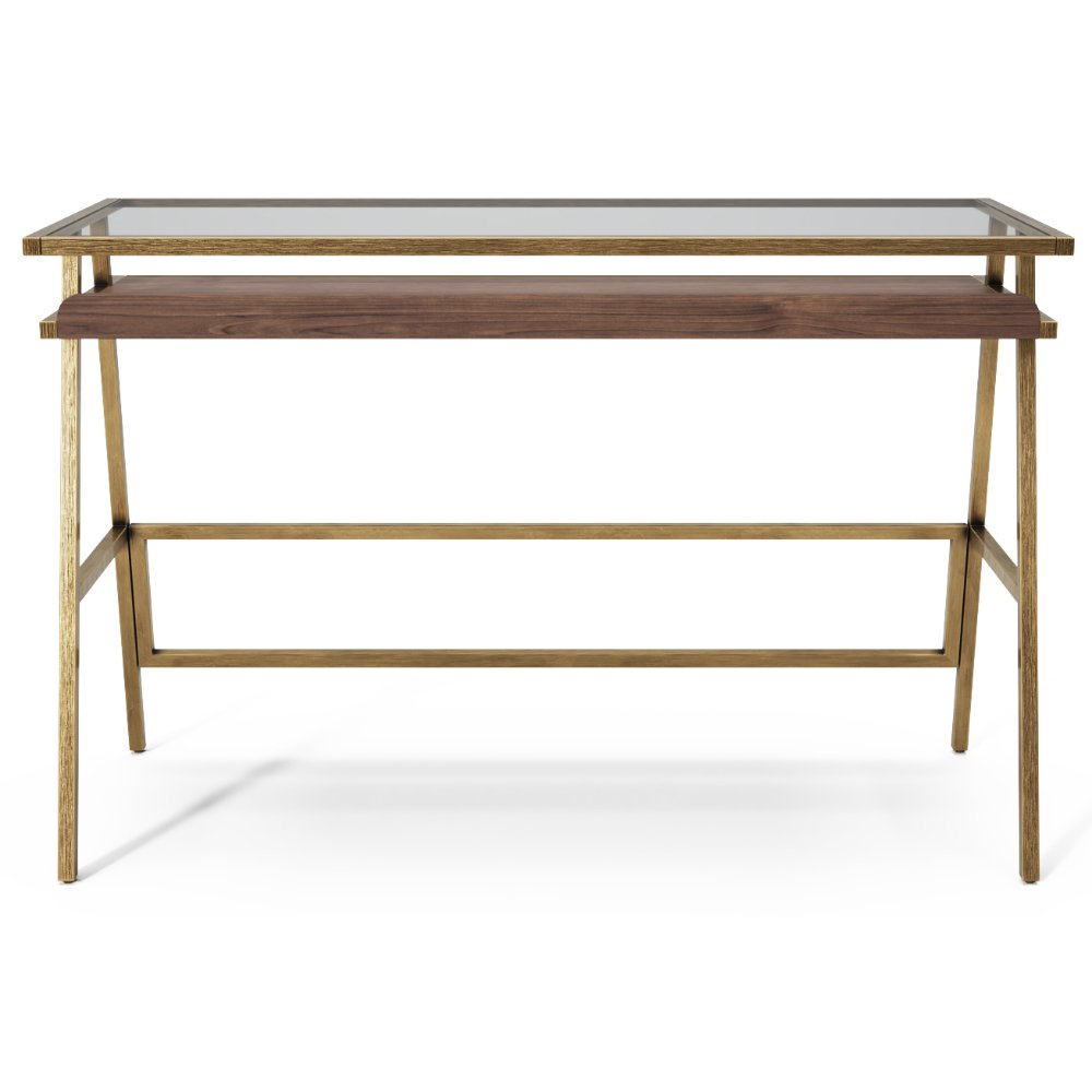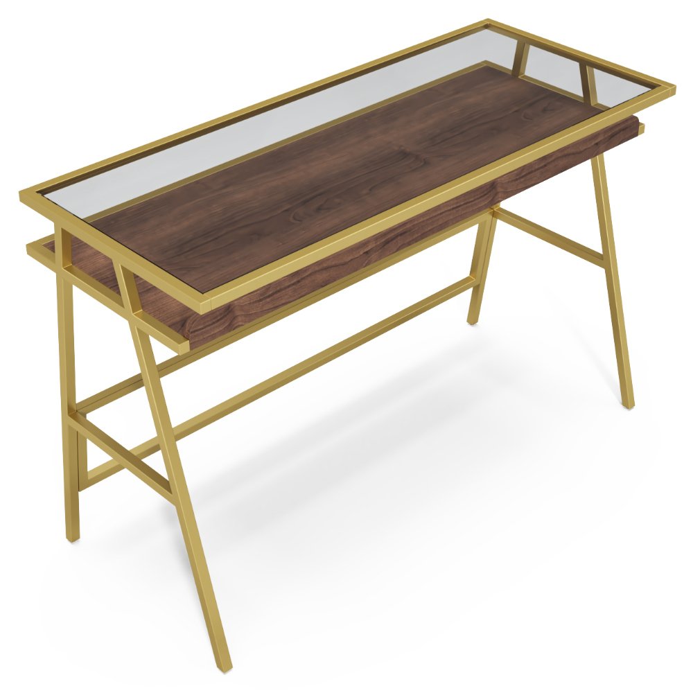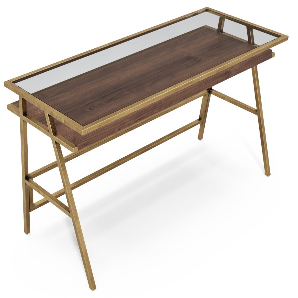 Özel tasarım olarak üretilen Nexus Çalışma Masası, cam, ahşap ve metalin uyumunu evinize getiriyor.