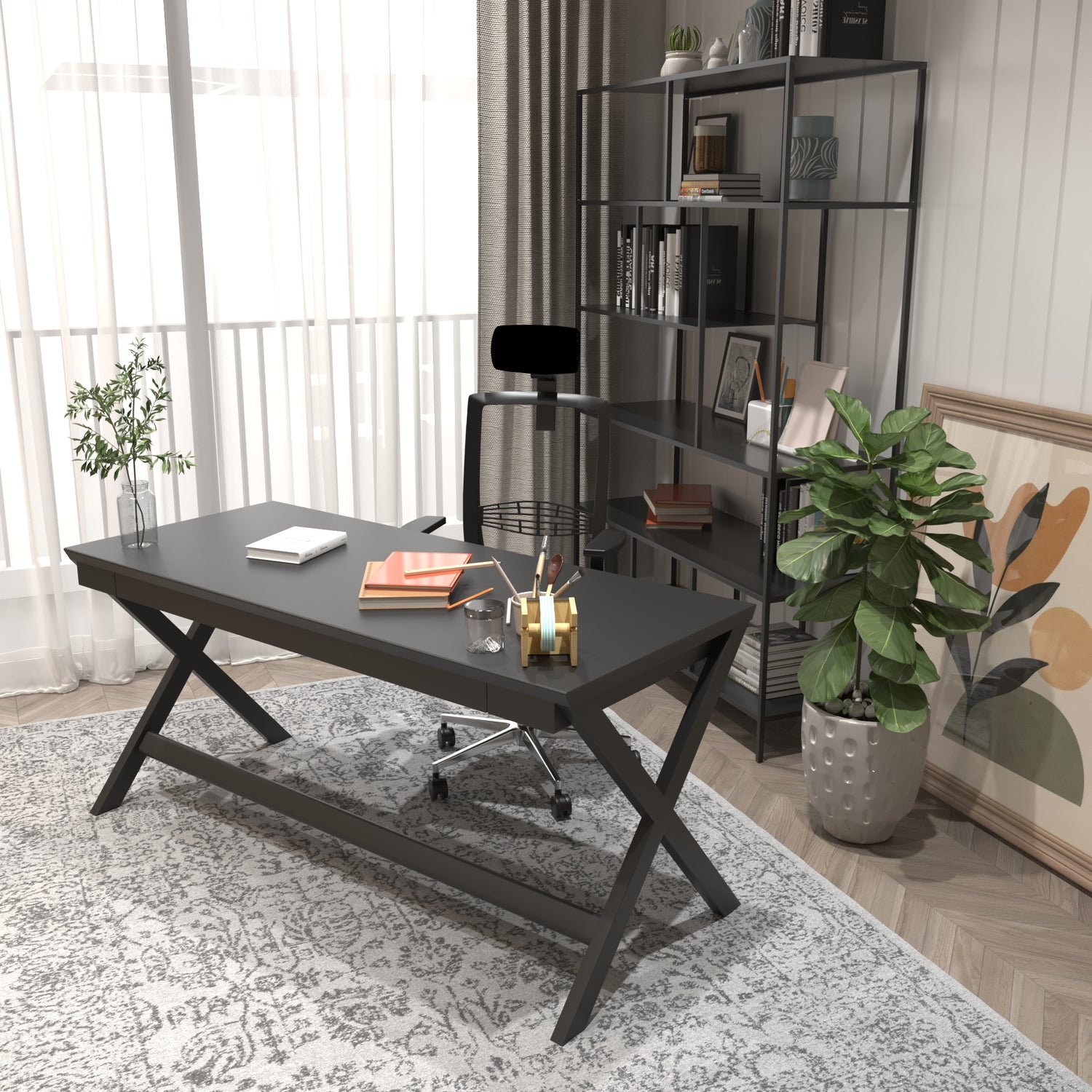 Siyah Geniş Çalışma Masası