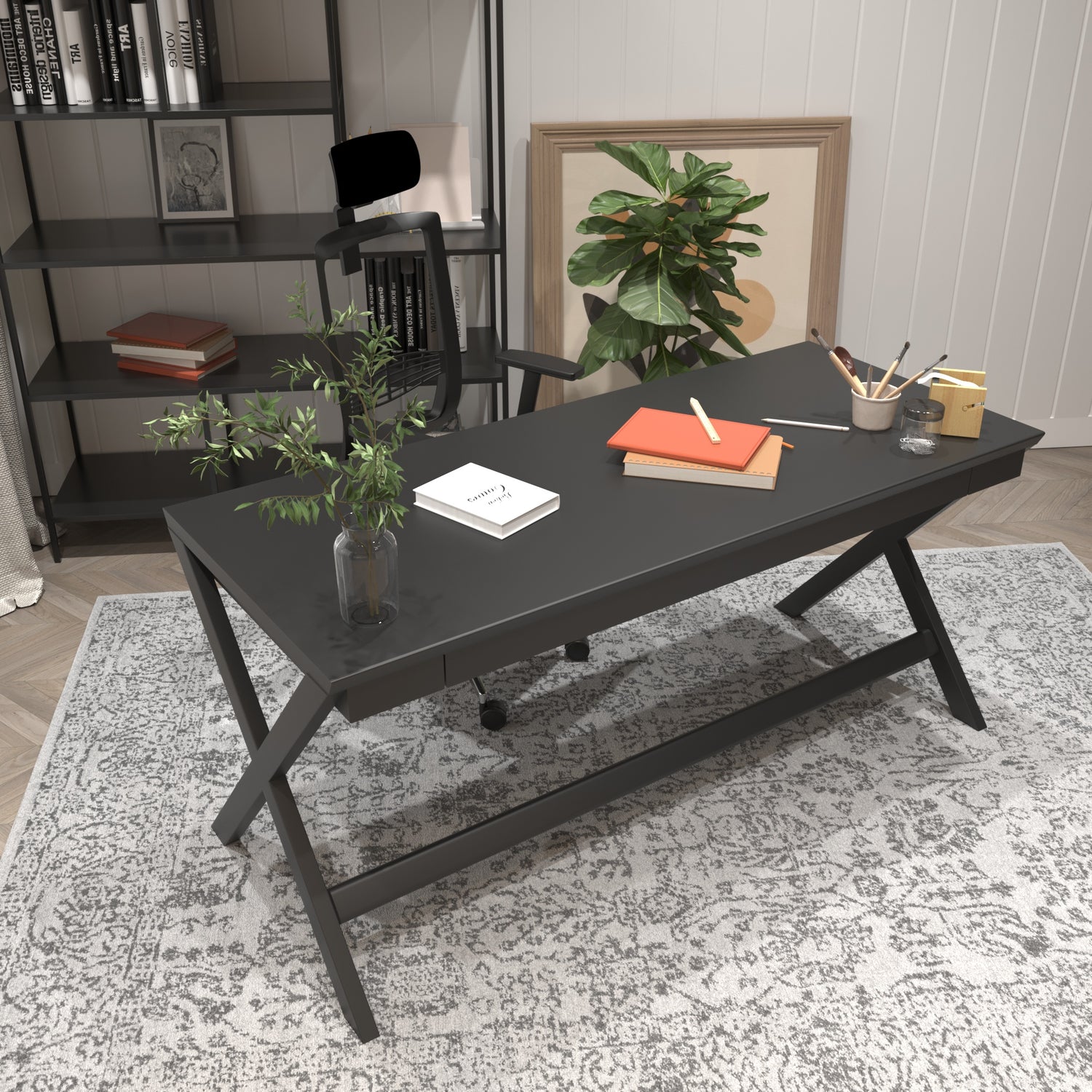 Özel tasarım çapraz ahşap ayakları ve geniş yüzeyinin sağladığı kullanım rahatlığıyla çalışma odanıza modern bir görünüm kazandırırken eşyalarınızı daha rahat organize etmenizi sağlar. Uzun yıllar boyunca, eskimez, yıpranmaz, deforme olmaz.