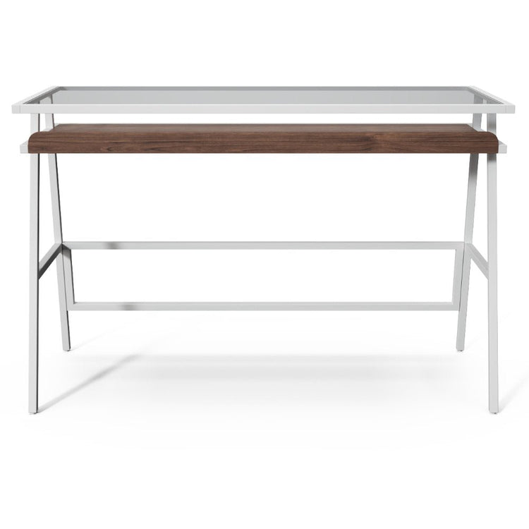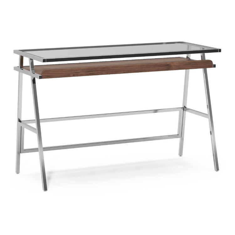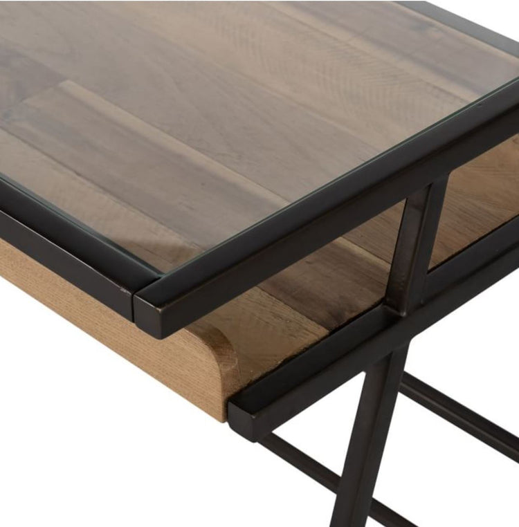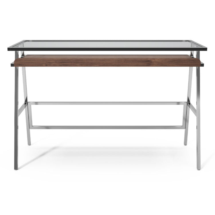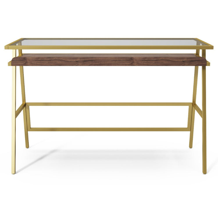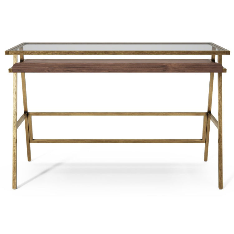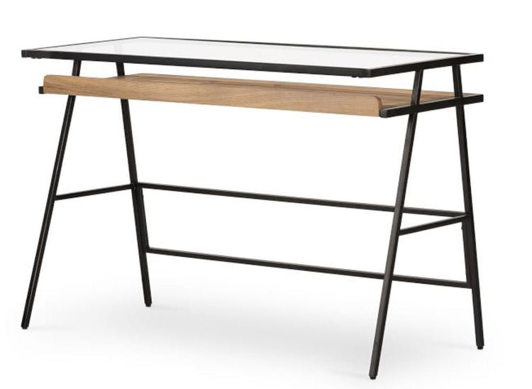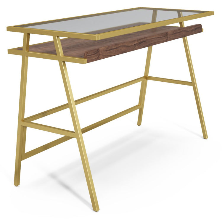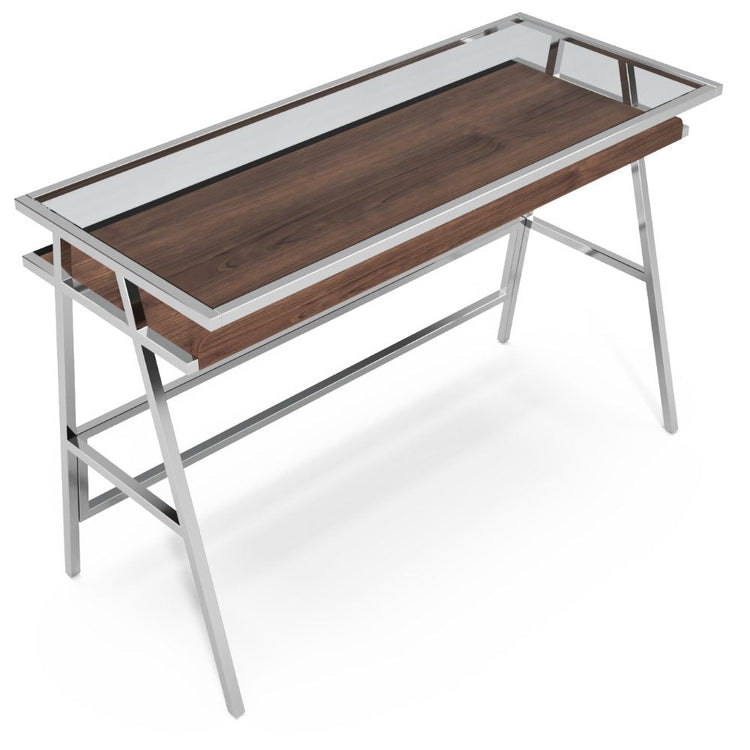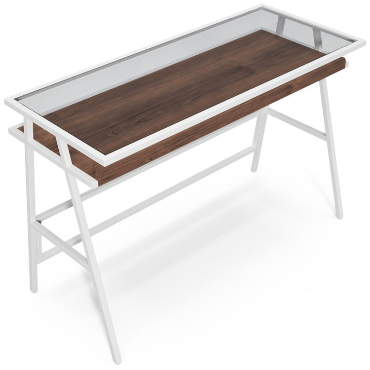 Özel tasarım olarak üretilen Nexus Çalışma Masası, cam, ahşap ve metalin uyumunu evinize getiriyor.