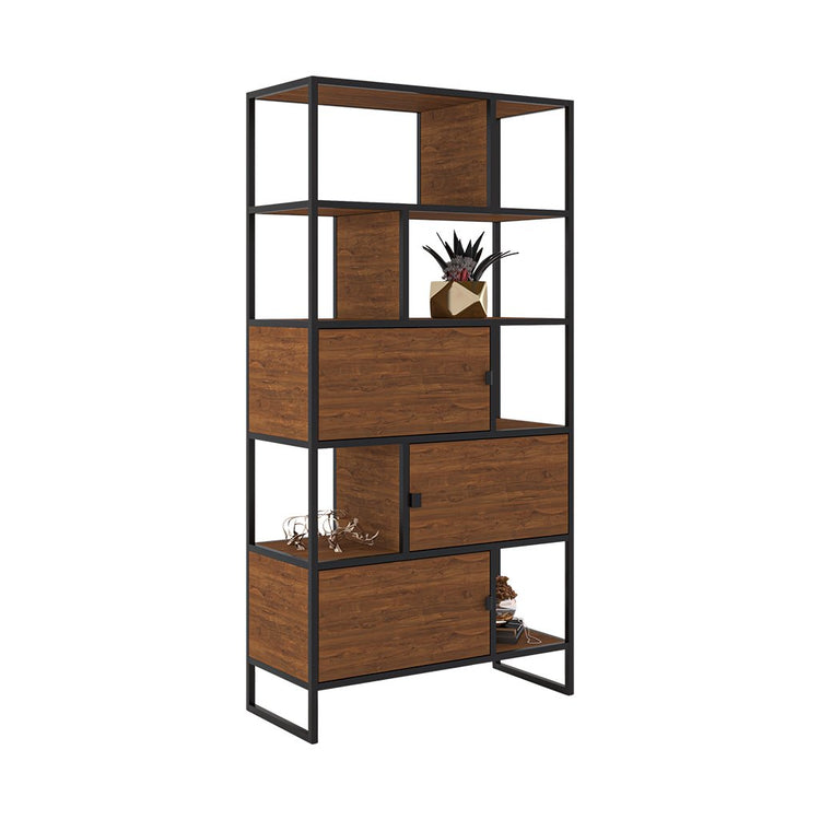 Swood Dolaplı Kitaplık açık rafları ve dolaplı rafları sayesinde bolca saklama alanı sunar.