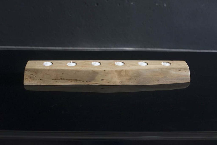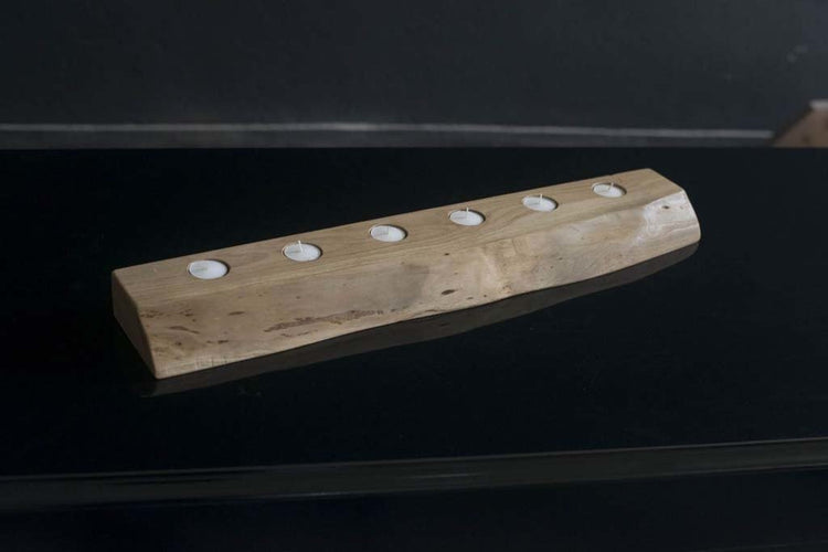 68 cm uzunluğundaki mumluk, kestane ağacından üretilmiştir. 6 adet tea light mum koyma yeri vardır.