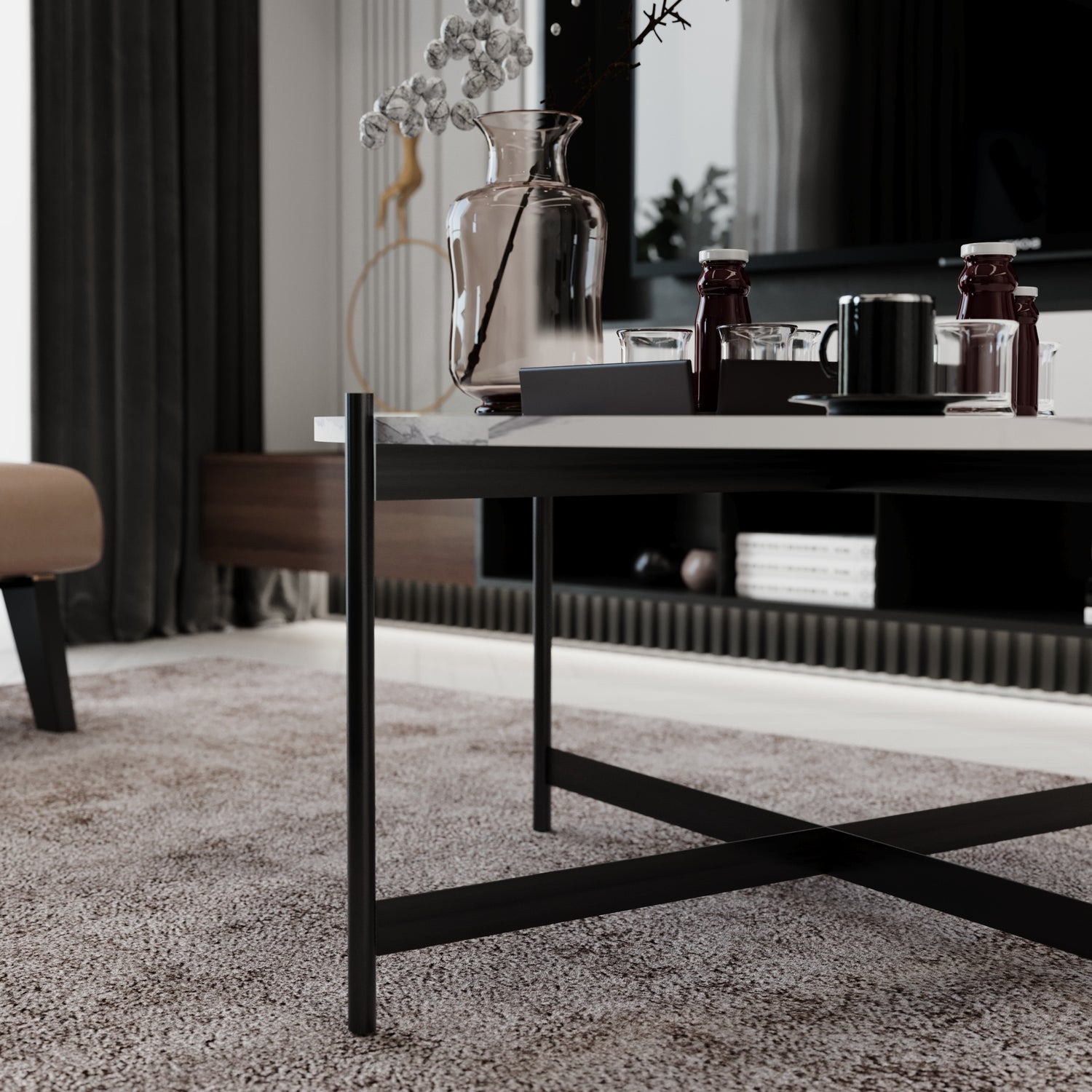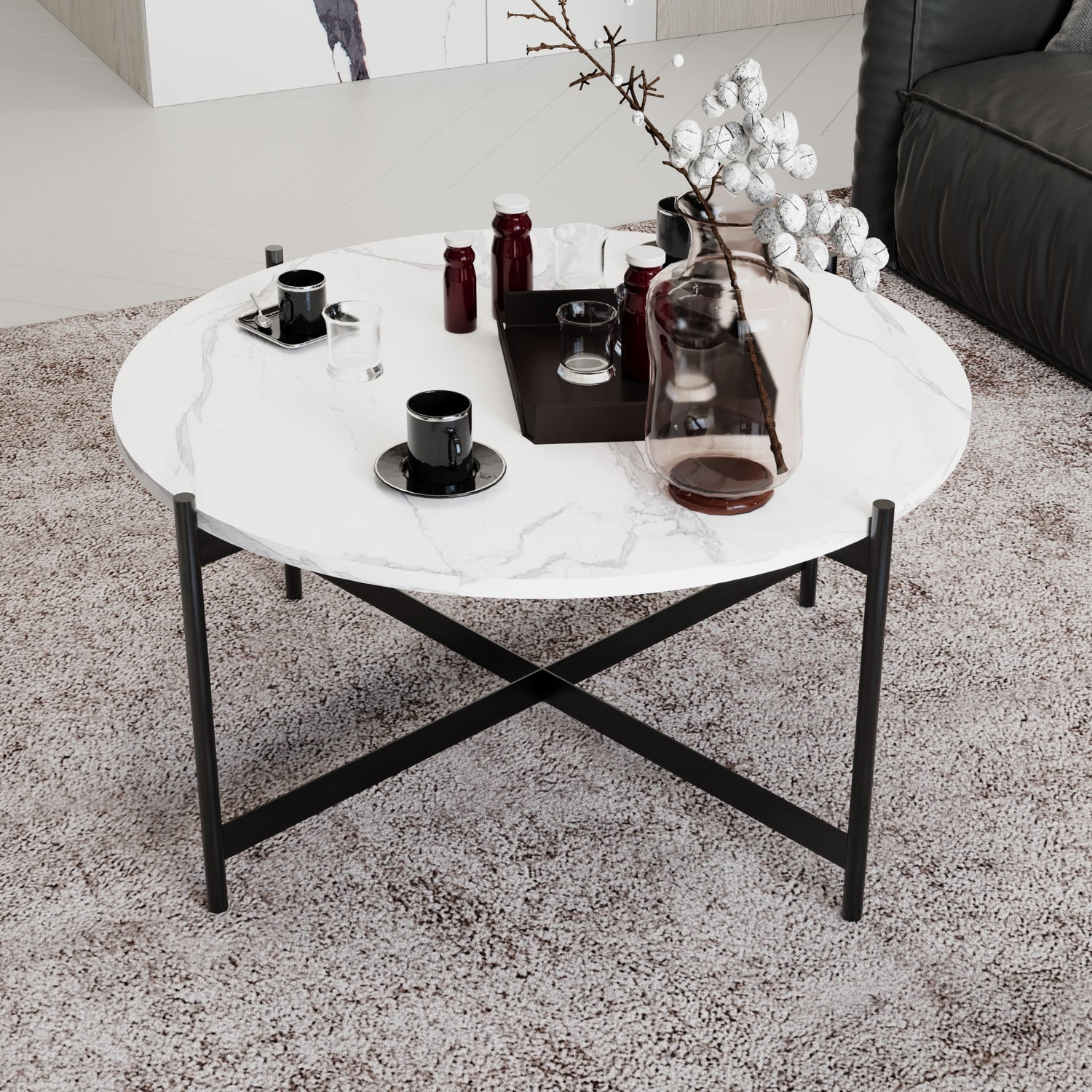 | Kullanılan Malzeme | Ayak: Metal, Tabla: Beyaz Mermer |