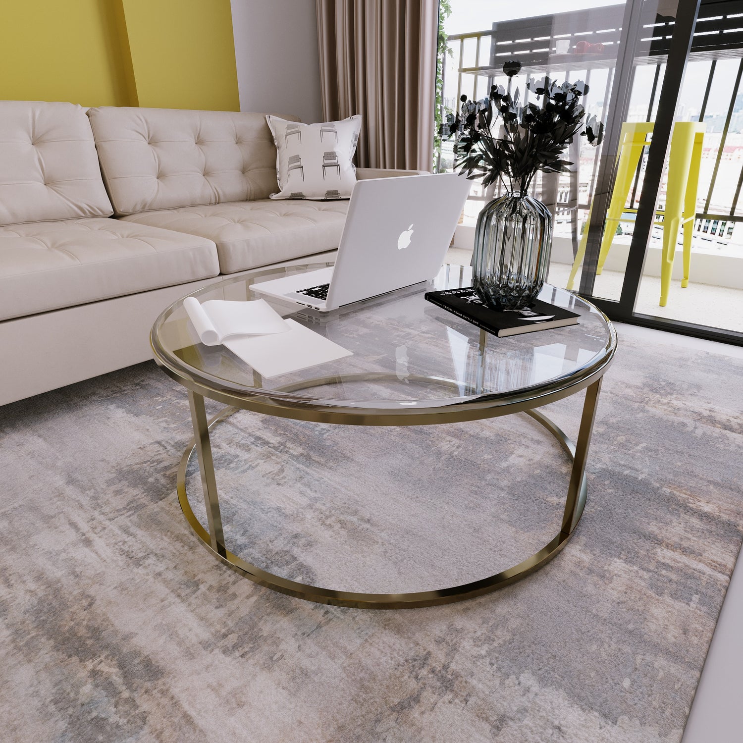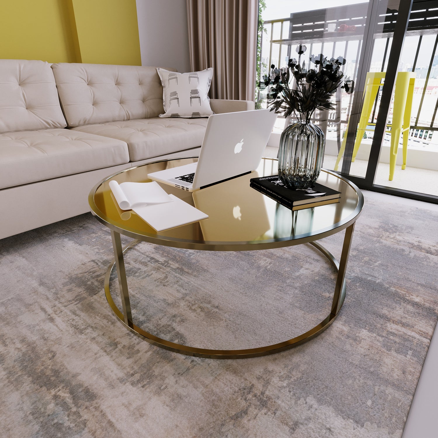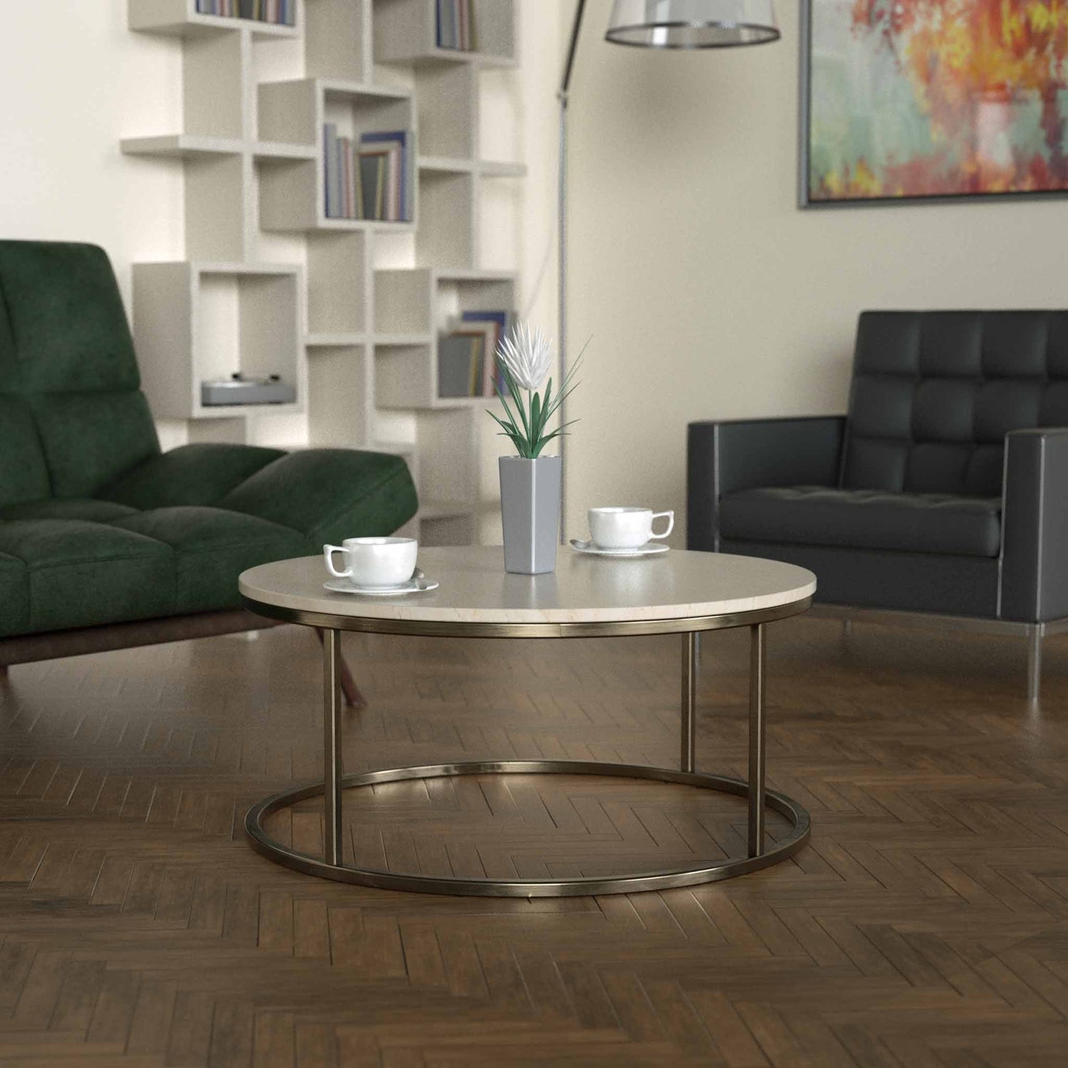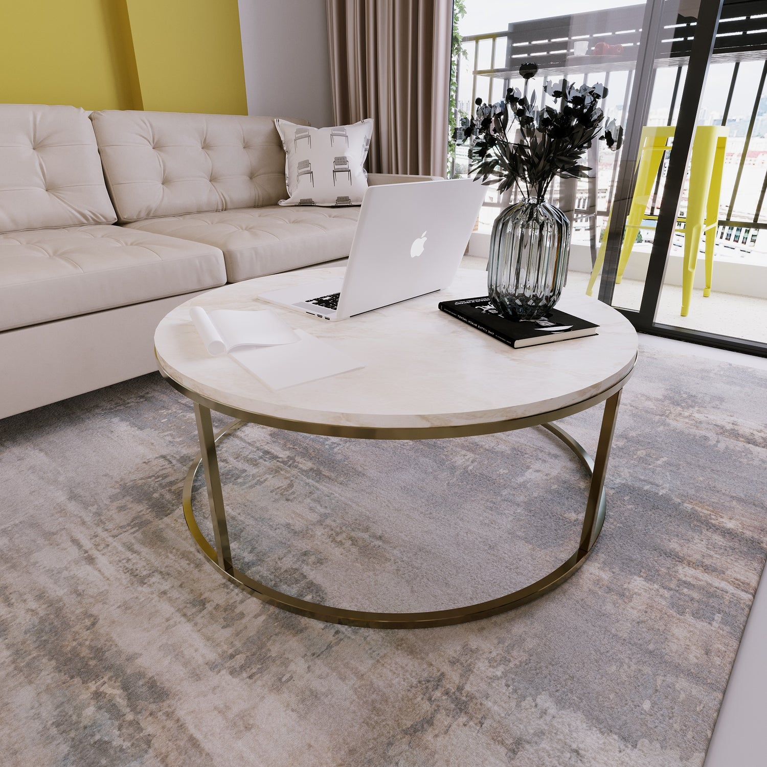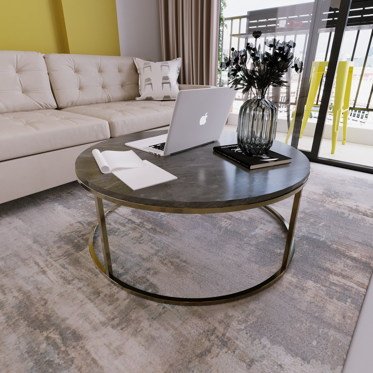Potrica Yuvarlak Orta Sehpa Eskitme Pirinç Ayak