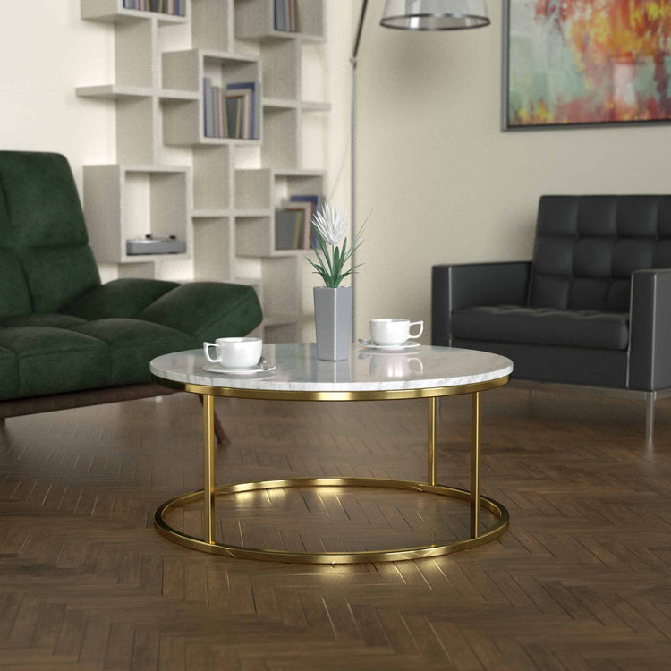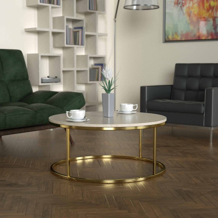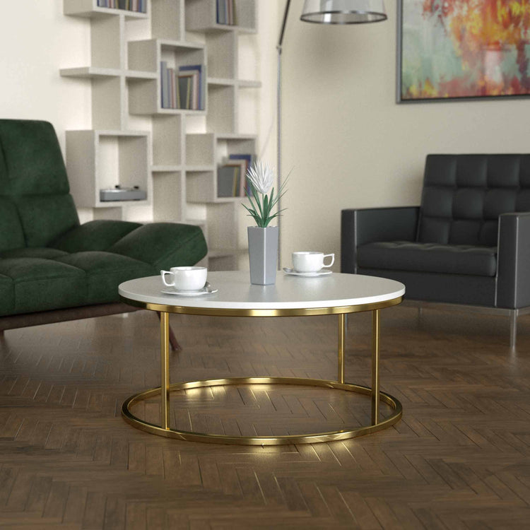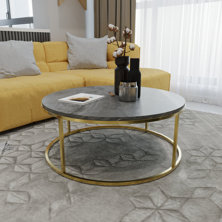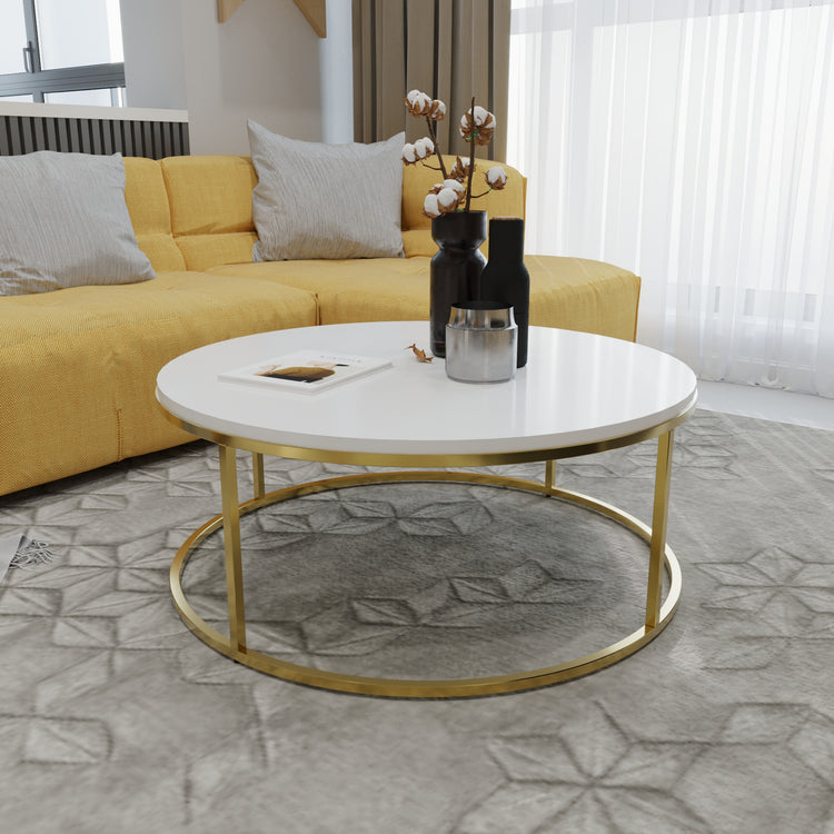 Potrica Yuvarlak Orta Sehpa Parlak Pirinç