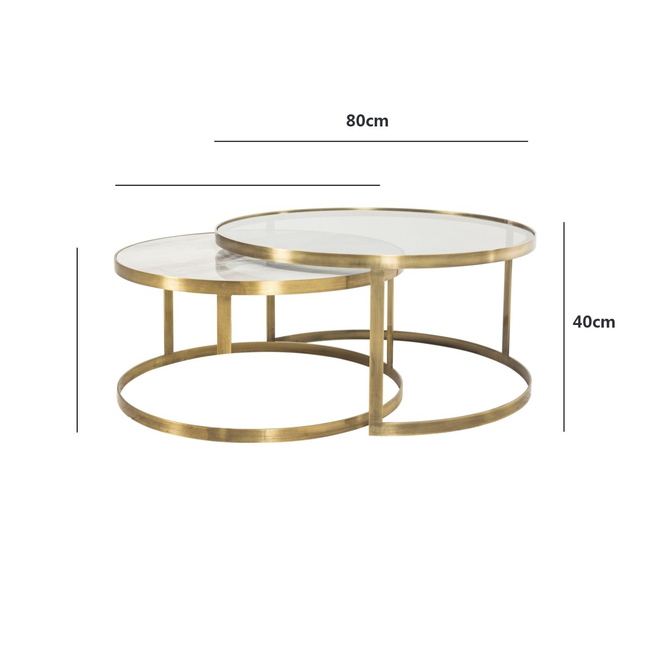 | Ürün Ölçüleri | Büyük Sehpa: Çap: 80 cm, Yükseklik: 39 cm Küçük Sehpa: Çap: 70 cm, Yükseklik: 35 cm |