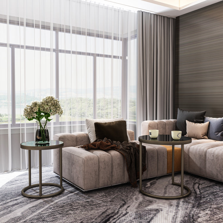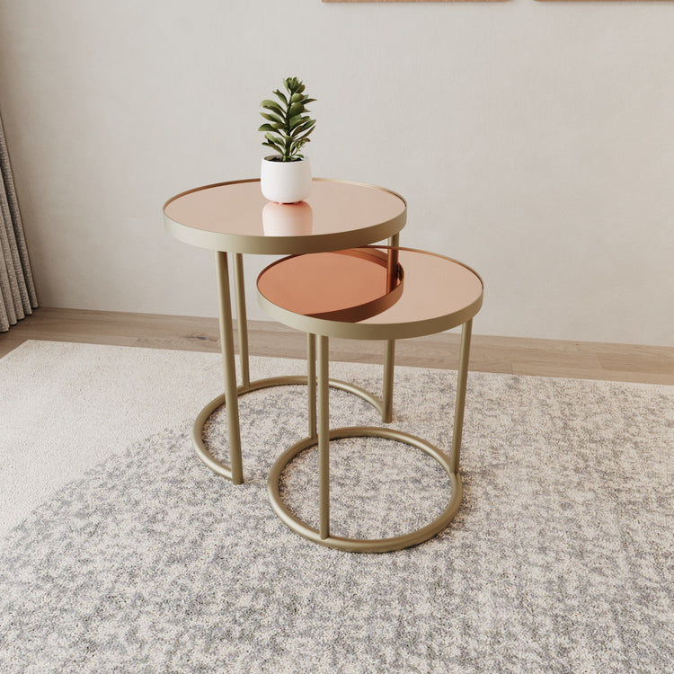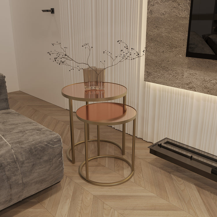Büyük Sehpa: Çap: 50 cm, Yükseklik: 55 cm Küçük Sehpa: Çap: 40 cm, Yükseklik: 50 cm