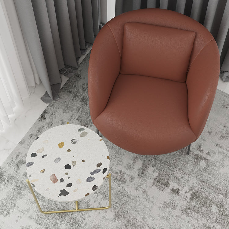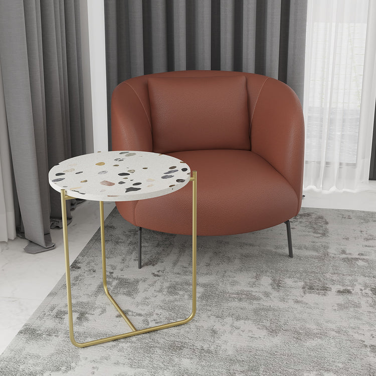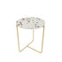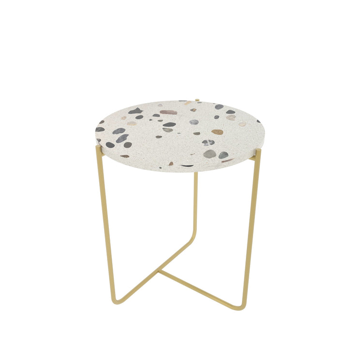 Ürün malzemesi:  Metal ayak üzeri gold statik boya ve terrazo mermer tabladır.