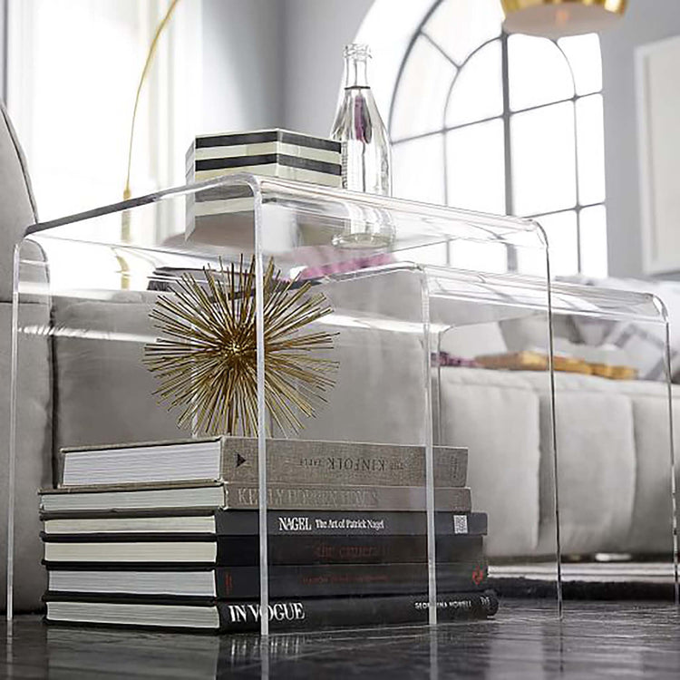 Geleneksel sehpa tasarımlarının yanında, evinize modern bir hava katacak Şeffaf Akrilik Yan Sehpa ile aydınlık yaşam alanlarına sahip olabileceksiniz. Şeffaf akrilik Zigon Sehpa'yı; yan sehpa, laptop sehpası, çiçek sehpası, ofis sehpası, komodin olarak da kullanabilirsiniz. 14 iş günü içerisinde üretimi tamamlanmaktadır.