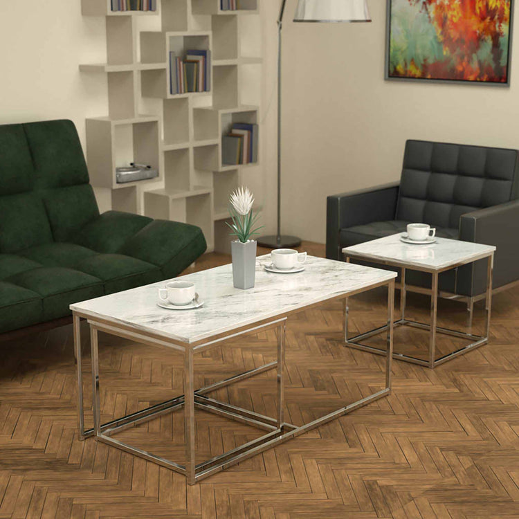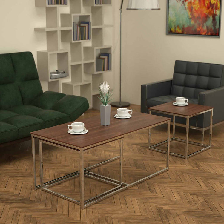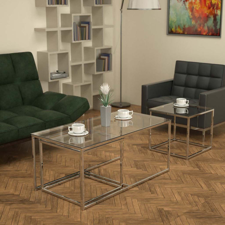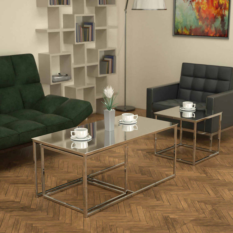 Twins İç İçe Geçmiş Sehpa Parlak Paslanmaz Ayak