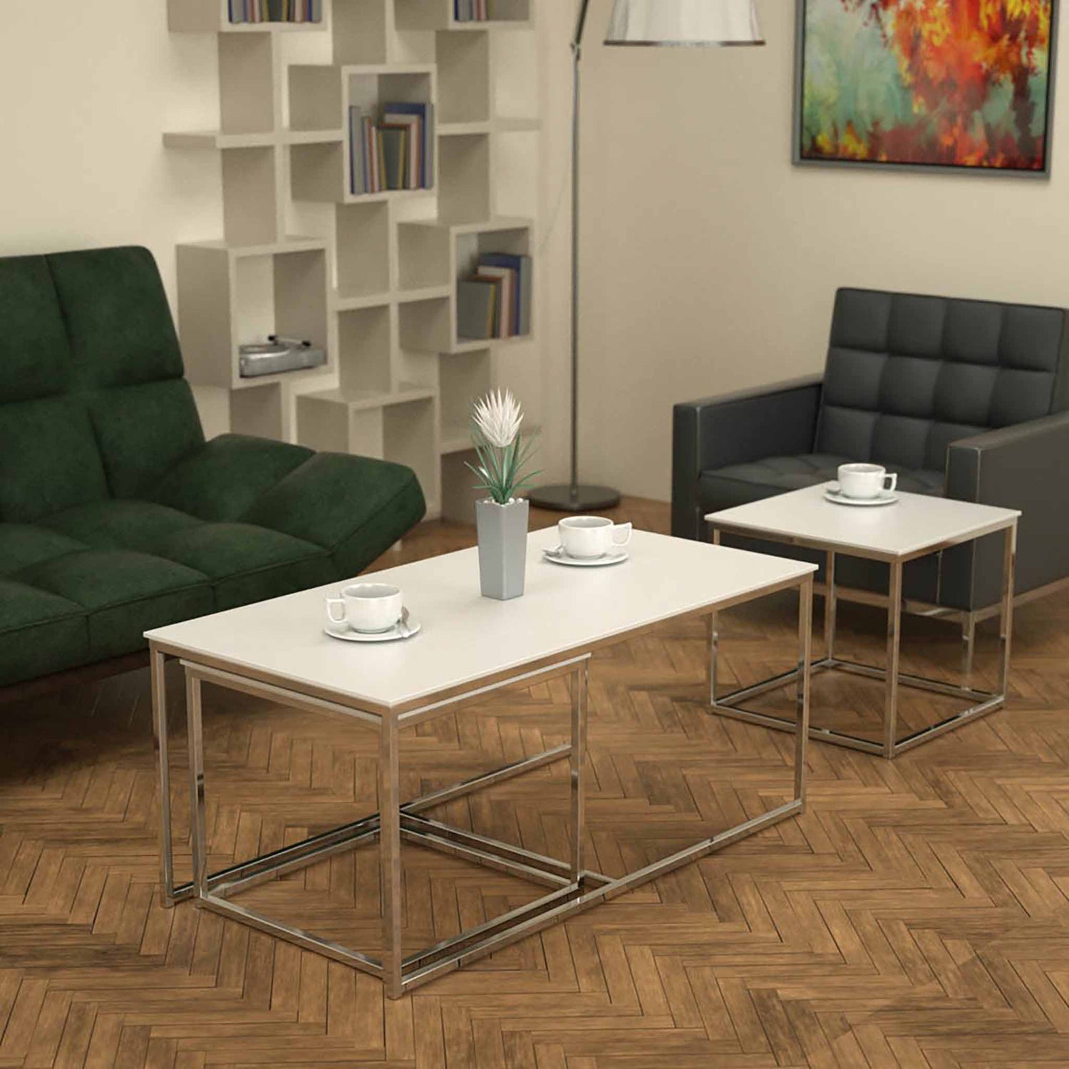 Birbiriyle uyumlu içe içe geçebilen özel tasarım sehpa modelimiz ile hem orta hem de yan sehpa ihtiyacınızı karşılayabilirsiniz. İsterseniz farklı odalarda farklı tasarımlarla kullanabilir isterseniz de beraber kullanabilirsiniz.  Kaliteli malzemesiyle hem modern hem de şık görünüşü aynı anda yakalayabilirsiniz. Cam içeren ürünlerimizde, güvenli cam (temperli cam) kullanılmaktadır.