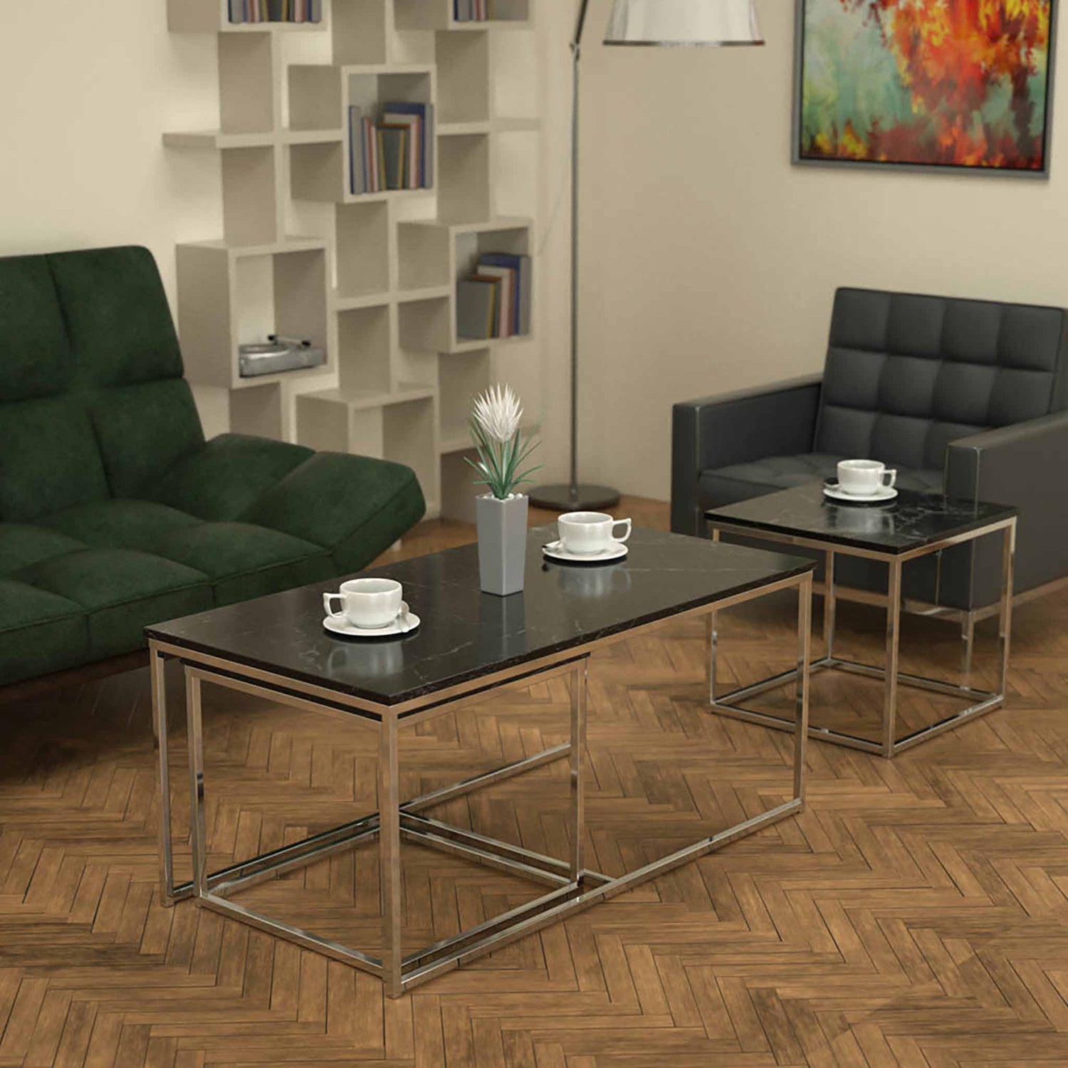 Twins İç İçe Geçmiş Sehpa Parlak Paslanmaz Ayak