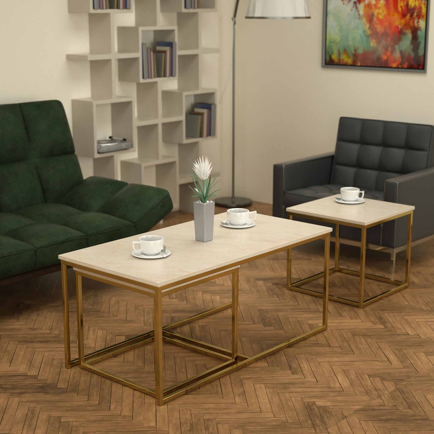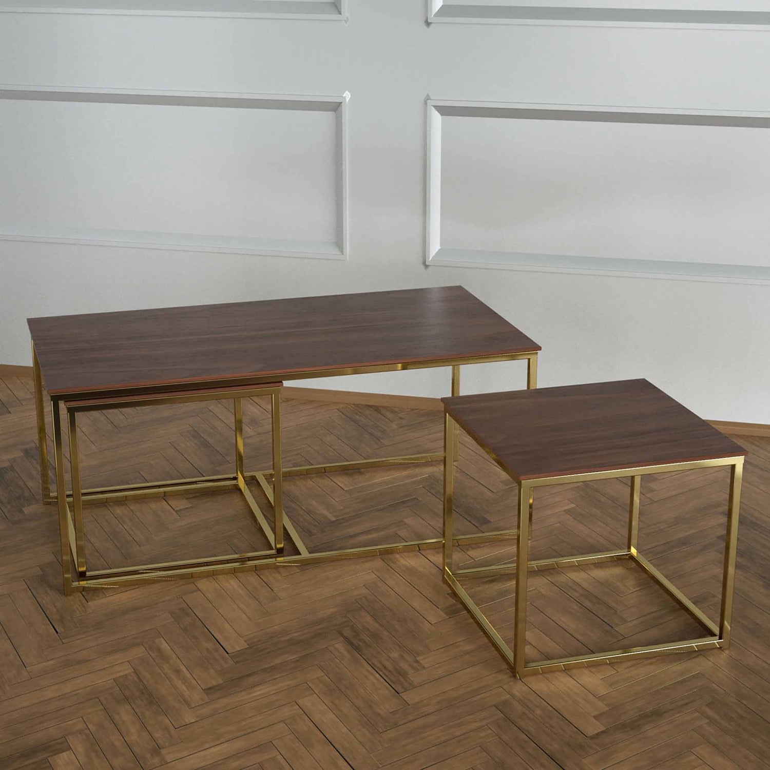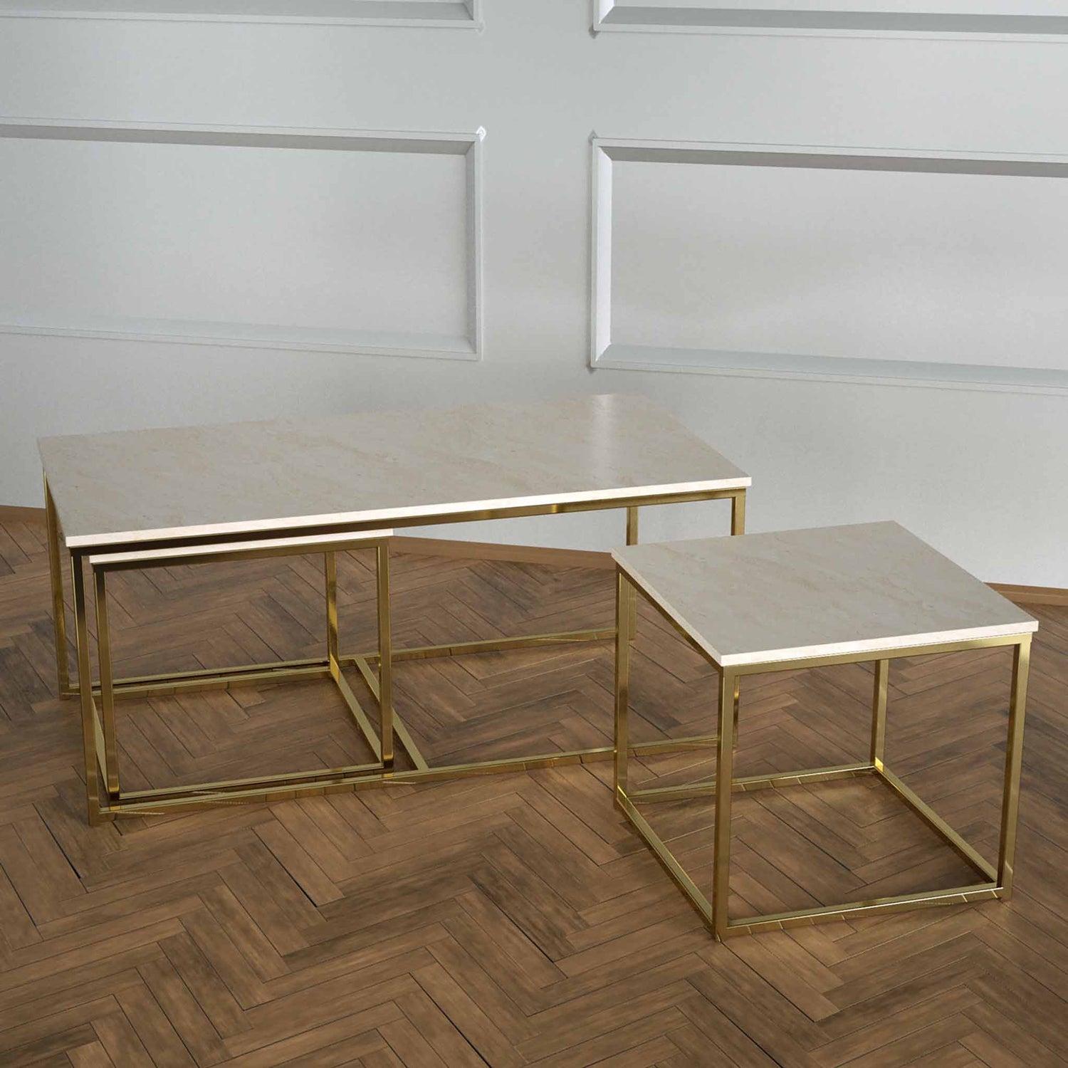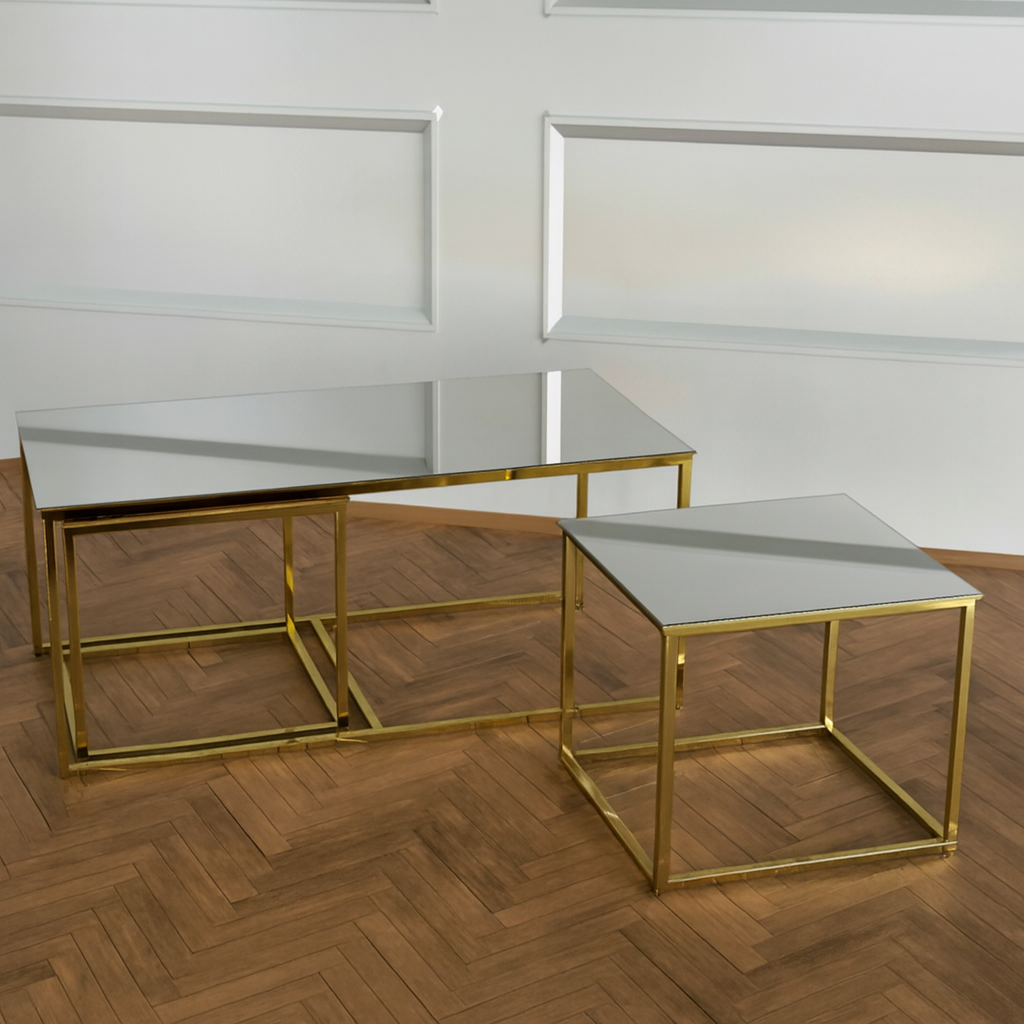 Twins İç İçe Geçmiş Sehpa Pirinç Ayak