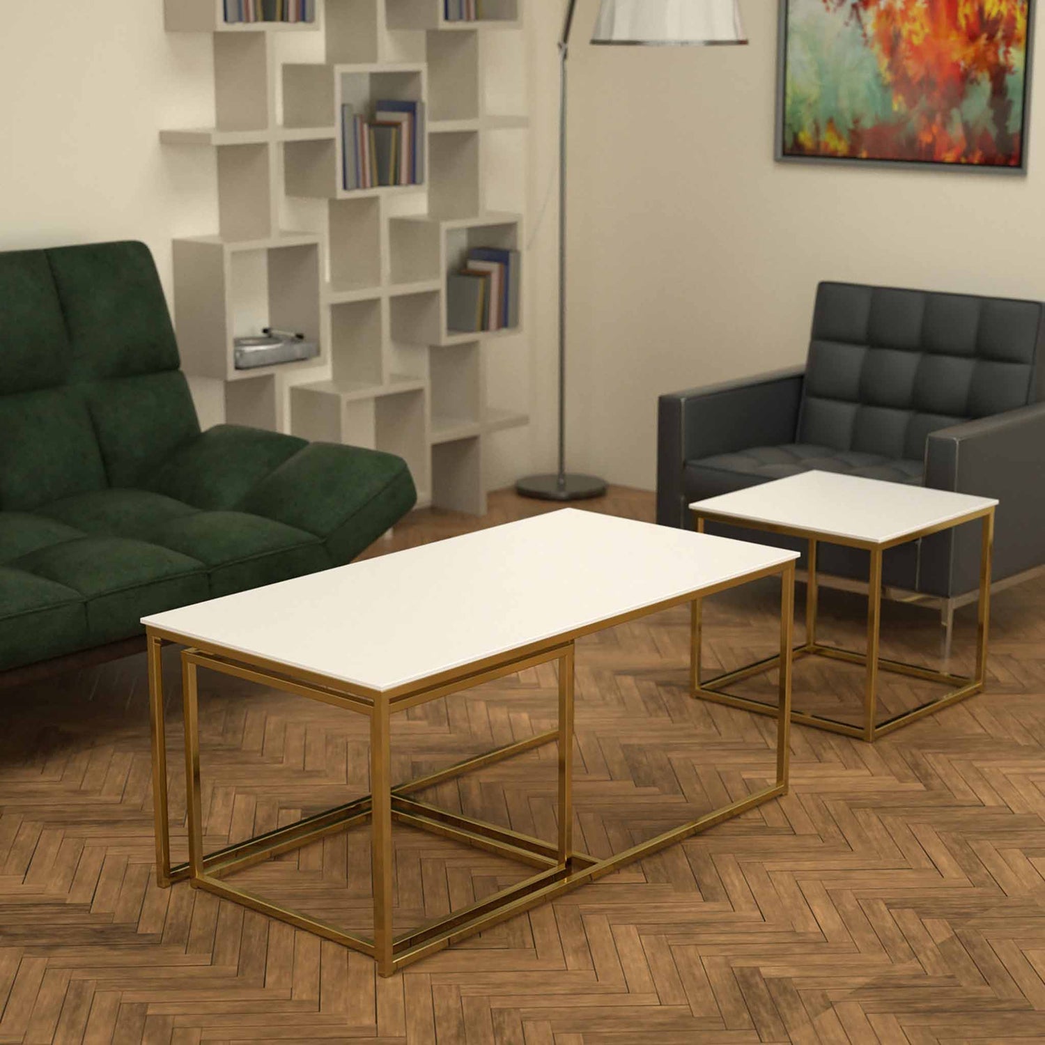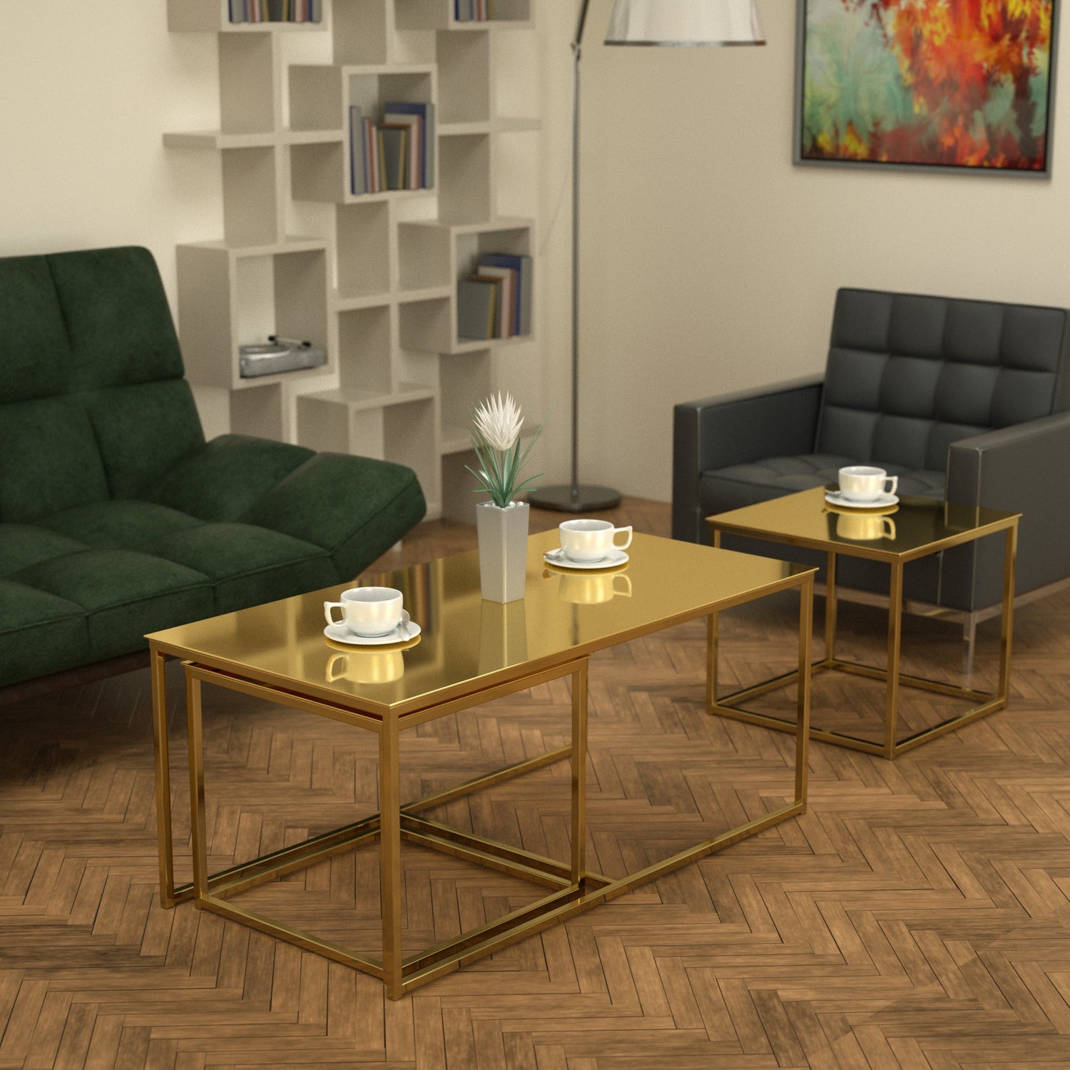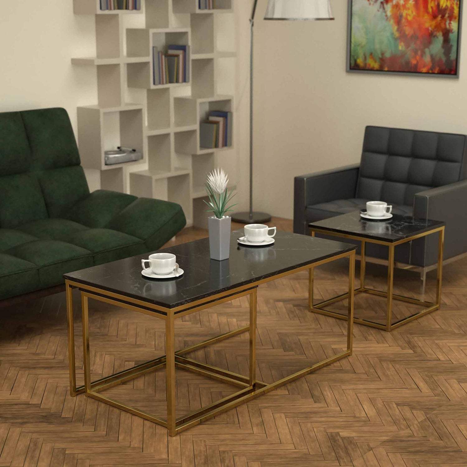 Twins İç İçe Geçmiş Sehpa Pirinç Ayak