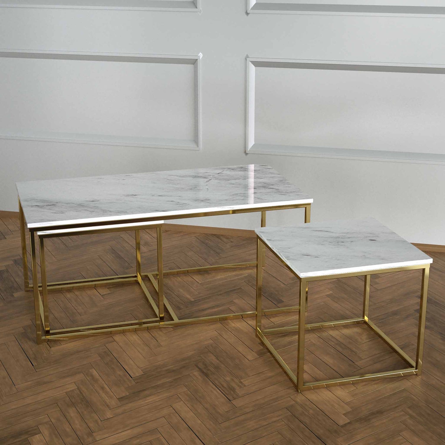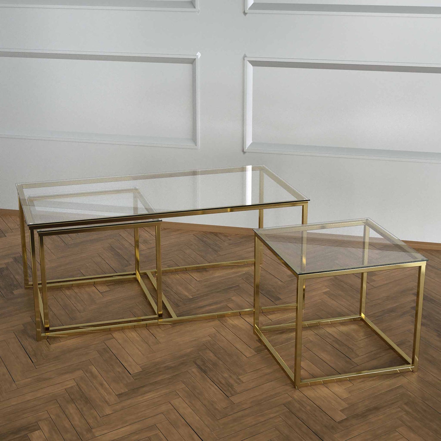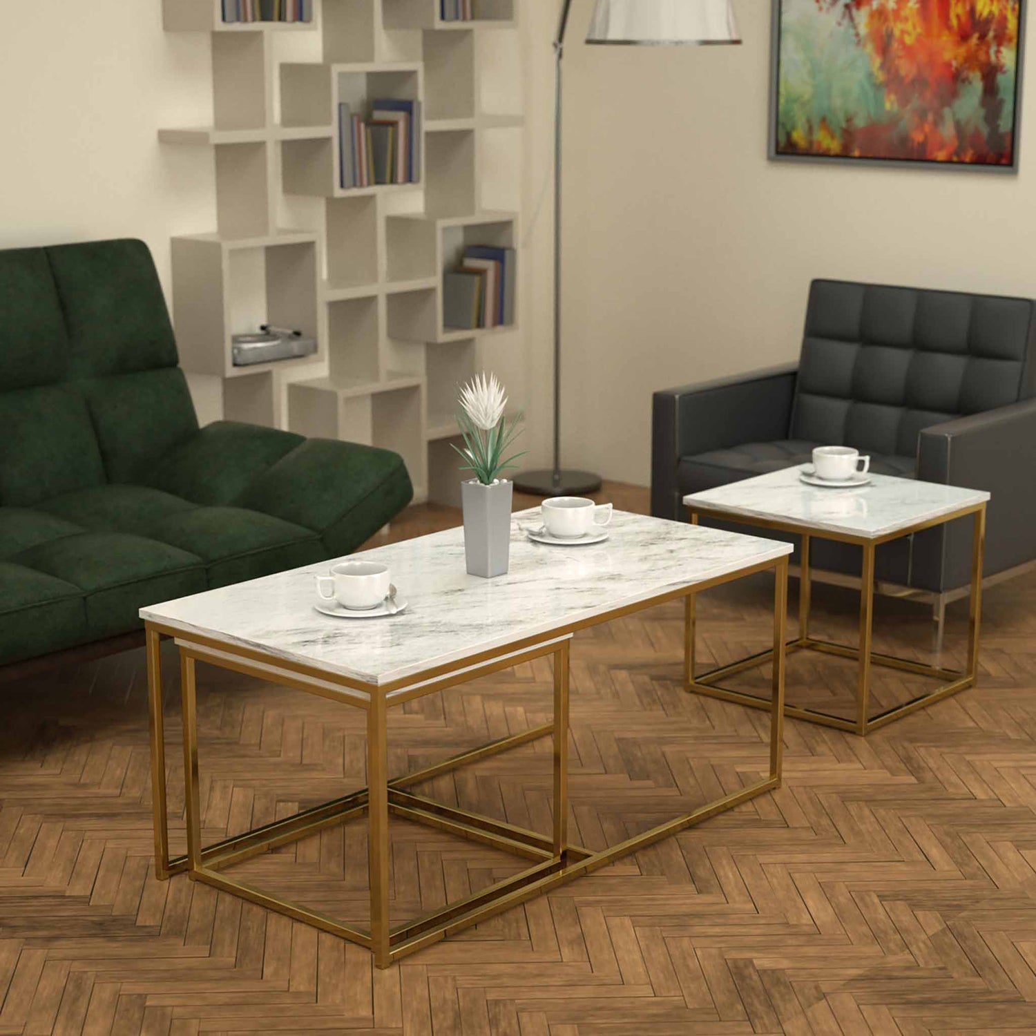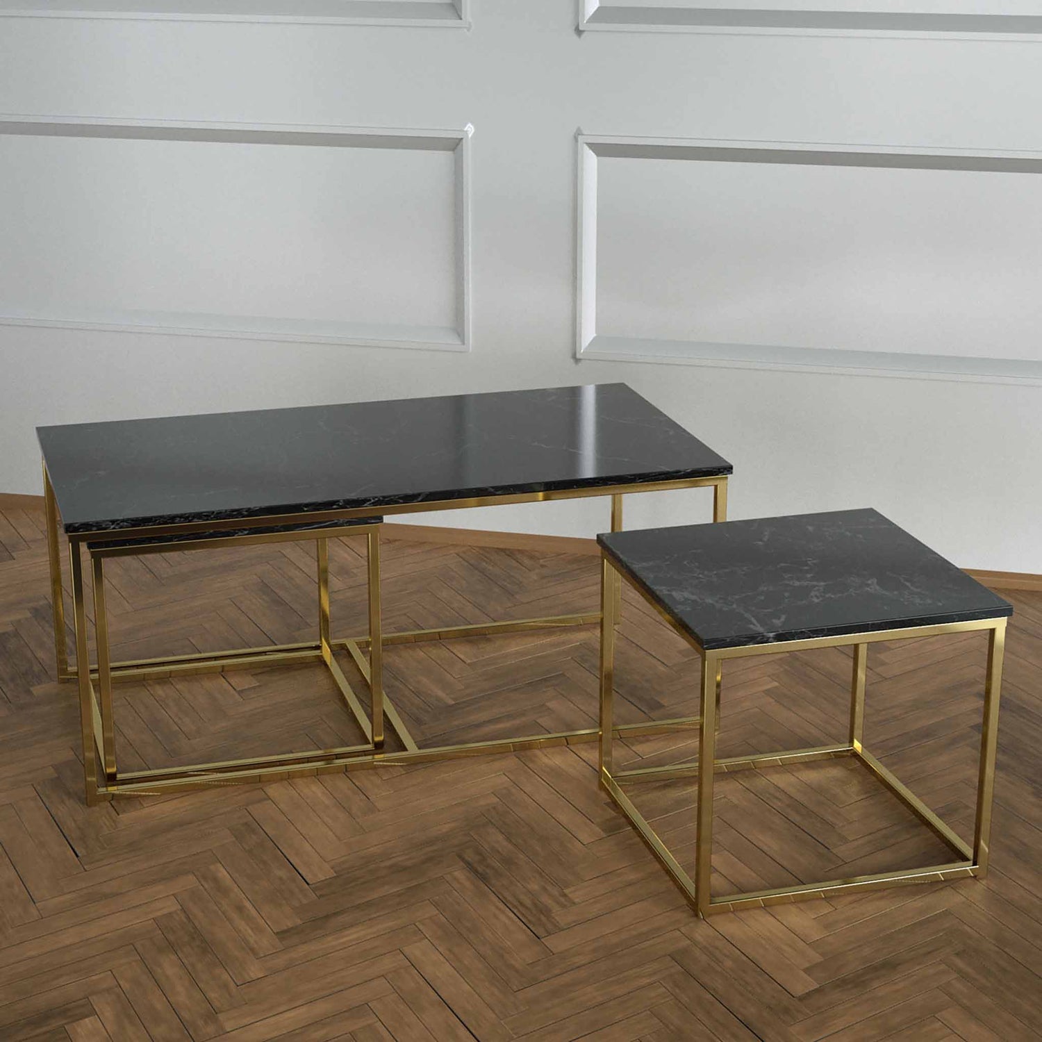Twins İç İçe Geçmiş Sehpa Pirinç Ayak
