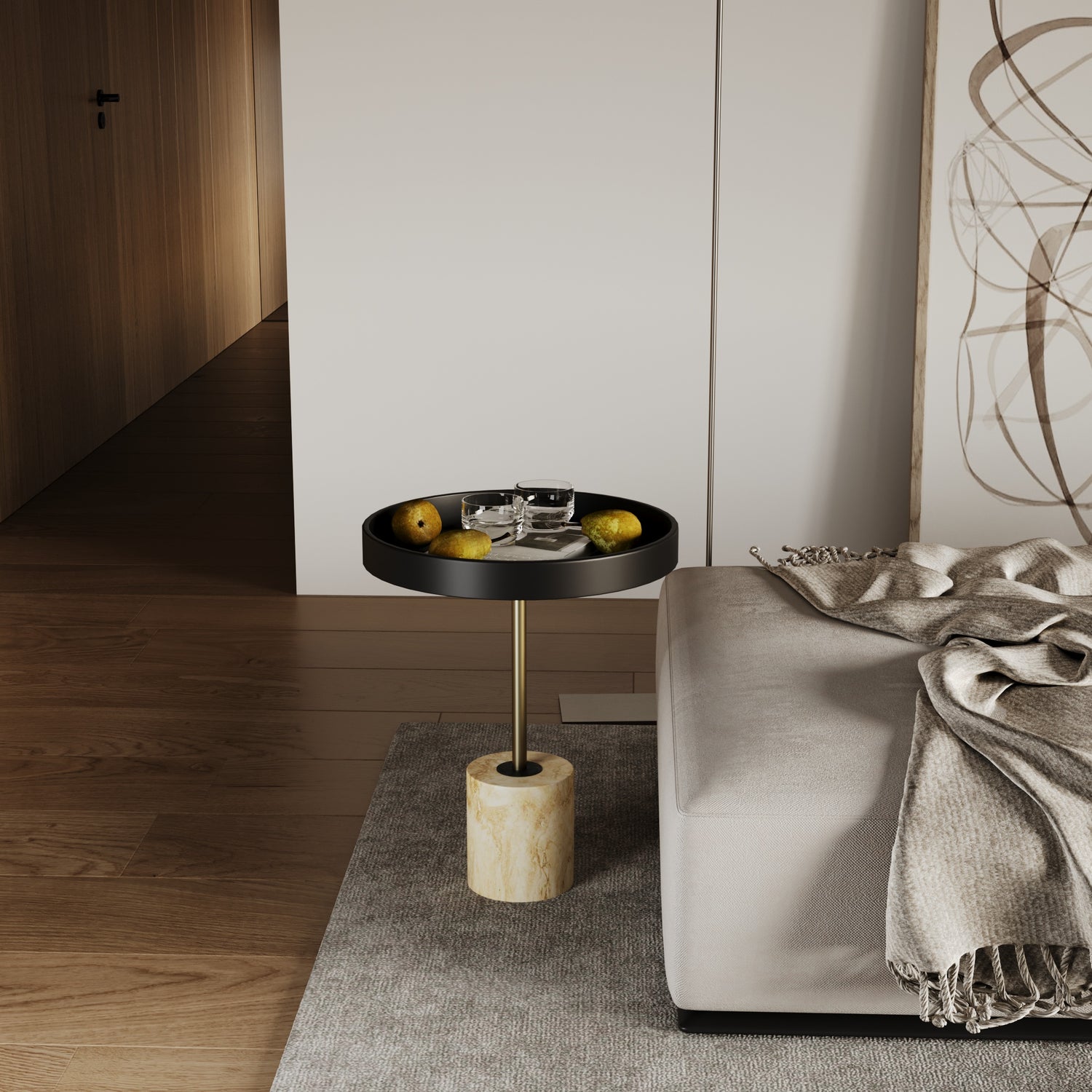 Ürün malzemesi: Mermer ayak ve kayın kereste tabladan oluşmaktadır.