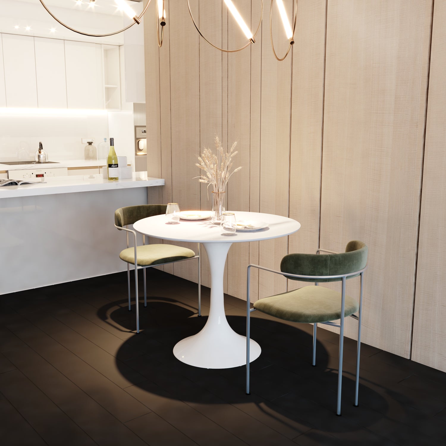 Göz alıcı tasarımı ile evinize yepyeni bir hava katacak Claire Yemek Masası Takımı'nı çok seveceksiniz. Takım içerisinde 1 adet Tulip Beyaz Yemek Masası Çap 100 ve 2 adet Kera Sandalye bulunmaktadır.