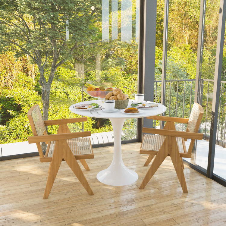 | Ürün Ölçüleri | Masa - Çap: 100 cm, Yükseklik: 75 cm Sandalye - Genişlik: 56 cm, Derinlik: 58 cm, Yükseklik: 80 cm |