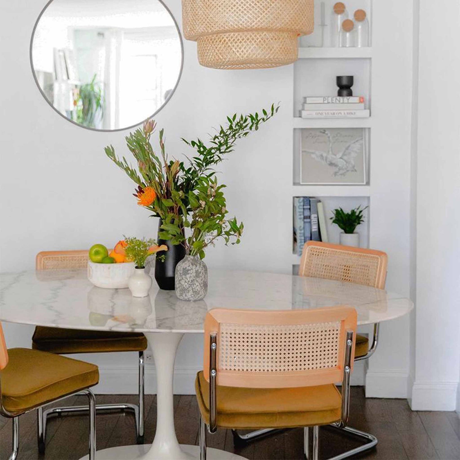 Özel tasarım ayak modeli ve çeşitli tabla seçenekleri ile Tulip Geniş Masamız zamana meydan okumaktadır. Mermer varyantında tamamı doğal %100 doğal taş mermer kullanılmaktadır. Mermer temizliği ve bakımı için yüzeyin uzun süre sıcak malzemelerle temas ettirilmemesi ve temizliğinin nemli bir bez ile yapılması gerekmektedir. Lake tabla varyantı ise özel tekniklerle boyanmakta ve uzun ömürlü kullanıma müsaittir. Demonte olarak gönderilir. Son derece kolay bir kurulumu vardır.