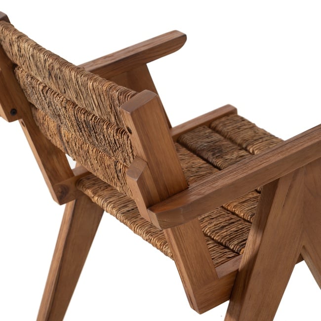 Brawny Ahşap Sandalye, gücü ve estetiği simgeleyen geometrik "V" ve "A" formlu ayak yapısıyla yaşam alanlarınıza heykelsi bir duruş kazandırıyor. Tasarımın ham ahşap yüzeyi ile sırt ve oturum alanındaki el işçiliği hasır doku, doğanın samimiyetini modern bir işçilikle harmanlar. Retro esintili bu parça, kolçaklı yapısı ve geniş oturum alanı sayesinde yemek masalarından çalışma köşelerine kadar her mekanda konforlu bir prestij sunar.