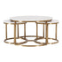 Bella Orta Sehpa seti, farklı yüksekliklerdeki dairesel formlarıyla oturma alanlarınıza dinamik bir katmanlılık kazandırıyor. Setin akıllı tasarımı, küçük parçaların ana sehpanın altına mükemmel şekilde yerleşmesine olanak tanıyarak kalabalık anlarda geniş bir servis yüzeyi, sakin zamanlarda ise kompakt bir düzen sunar. Beyaz mermerin doğal damar yapısı ile altın tonlarındaki metalik yansımaların birlikteliği, dekorasyonunuzda zamansız bir lüks algısı yaratır.