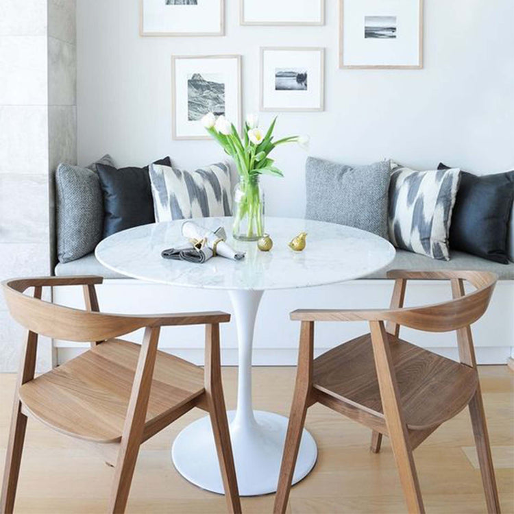 Özel tasarım ayak modeli ve çeşitli tabla seçenekleri ile Tulip Geniş Masamız zamana meydan okumaktadır. Mermer varyantında tamamı doğal %100 doğal taş mermer kullanılmaktadır. Mermer temizliği ve bakımı için yüzeyin uzun süre sıcak malzemelerle temas ettirilmemesi ve temizliğinin nemli bir bez ile yapılması gerekmektedir. Lake tabla varyantı ise özel tekniklerle boyanmakta ve uzun ömürlü kullanıma müsaittir. Demonte olarak gönderilir. Son derece kolay bir kurulumu vardır.